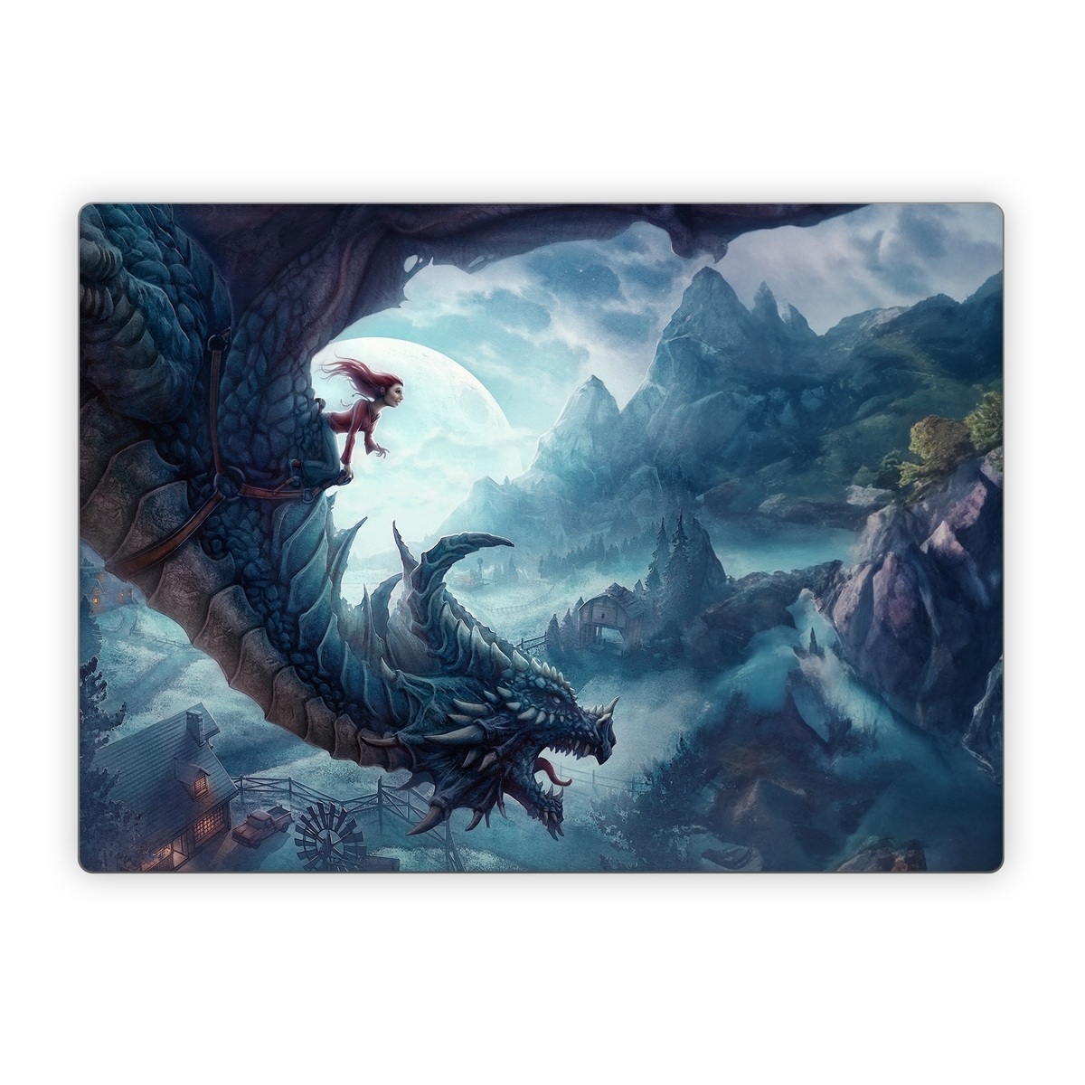 iStyles Microsoft Surface Laptop Series Skin design of Dragon, Cg artwork, Illustration, Action-adventure game, Fictional character, Mythical creature, Mythology, Fiction, Cryptid, Extinction, with blue, white, brown, green colors, and tagged with fantasy, animals, people, nature, urban, dragon, fantasy, girl, night, woman.