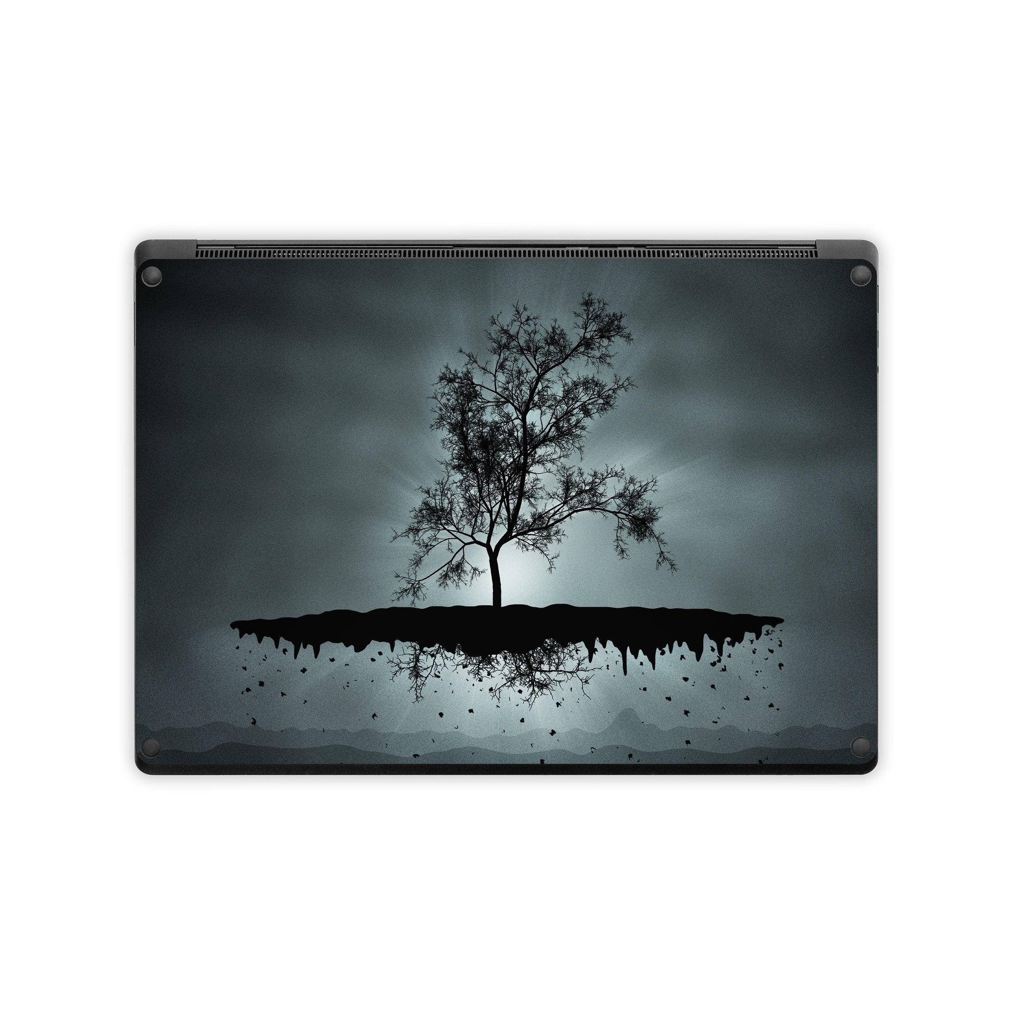 iStyles Microsoft Surface Laptop Series Skin design of Reflection, Sky, Nature, Water, Black, Tree, Black-and-white, Monochrome photography, Natural landscape, Atmospheric phenomenon, with black, gray, blue colors, and tagged with nature, fantasy.