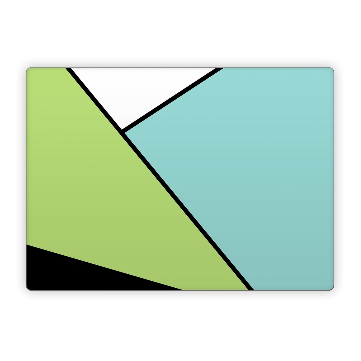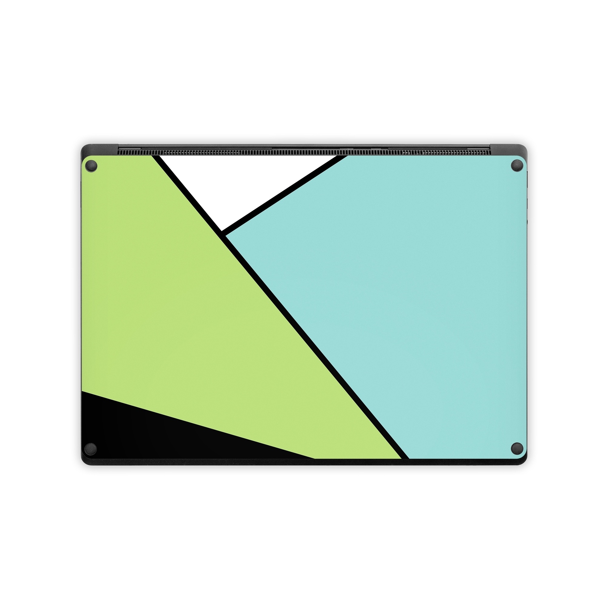iStyles Microsoft Surface Laptop Series Skin design of Green, Line, Blue, Triangle, Design, Parallel, Pattern, Graphic design, Slope, with white, black, green, blue colors, and tagged with patterns, block, blocking, color, colorblock, geometric, shape, simple.