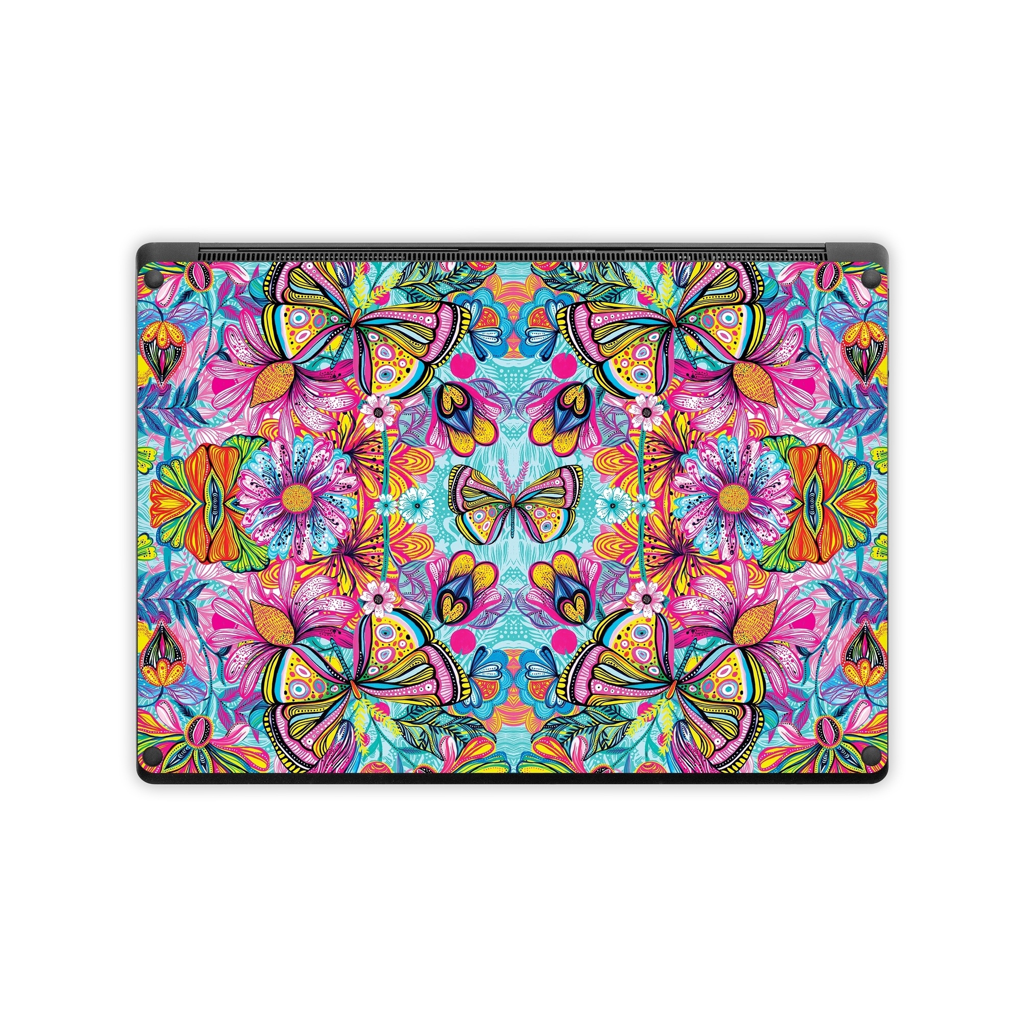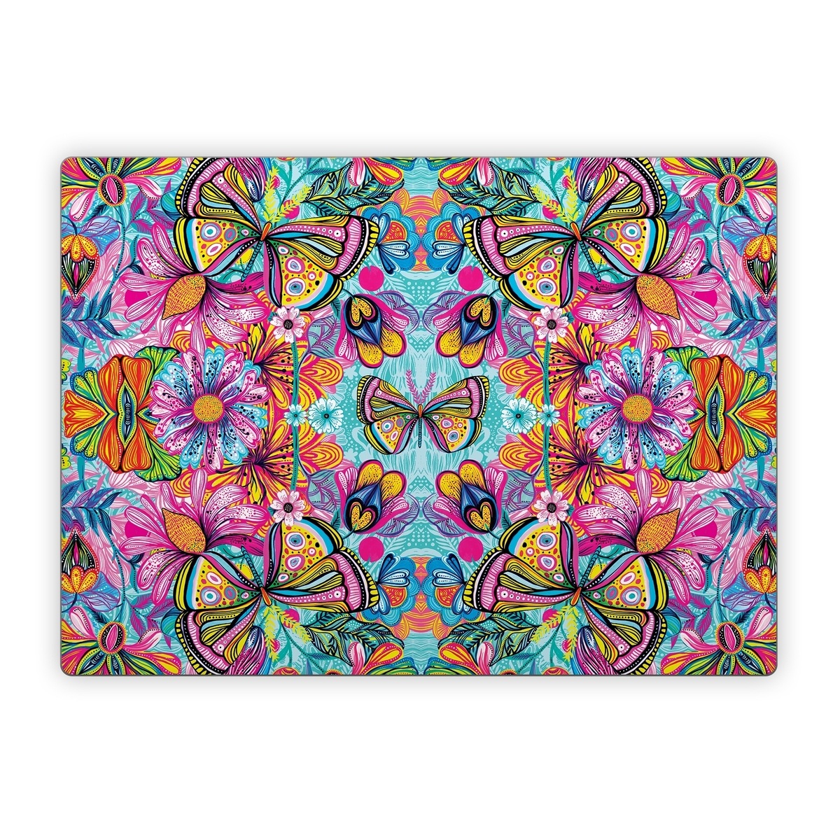 iStyles Microsoft Surface Laptop Series Skin design of Pattern, Design, Textile, Psychedelic art, Visual arts, Symmetry, Art, Motif, with blue, pink, green, yellow, orange, purple colors, and tagged with patterns, flowers, animals, bright, butterfly, carpintos, colorful, flowers, pastels, pattern, spring, summer.