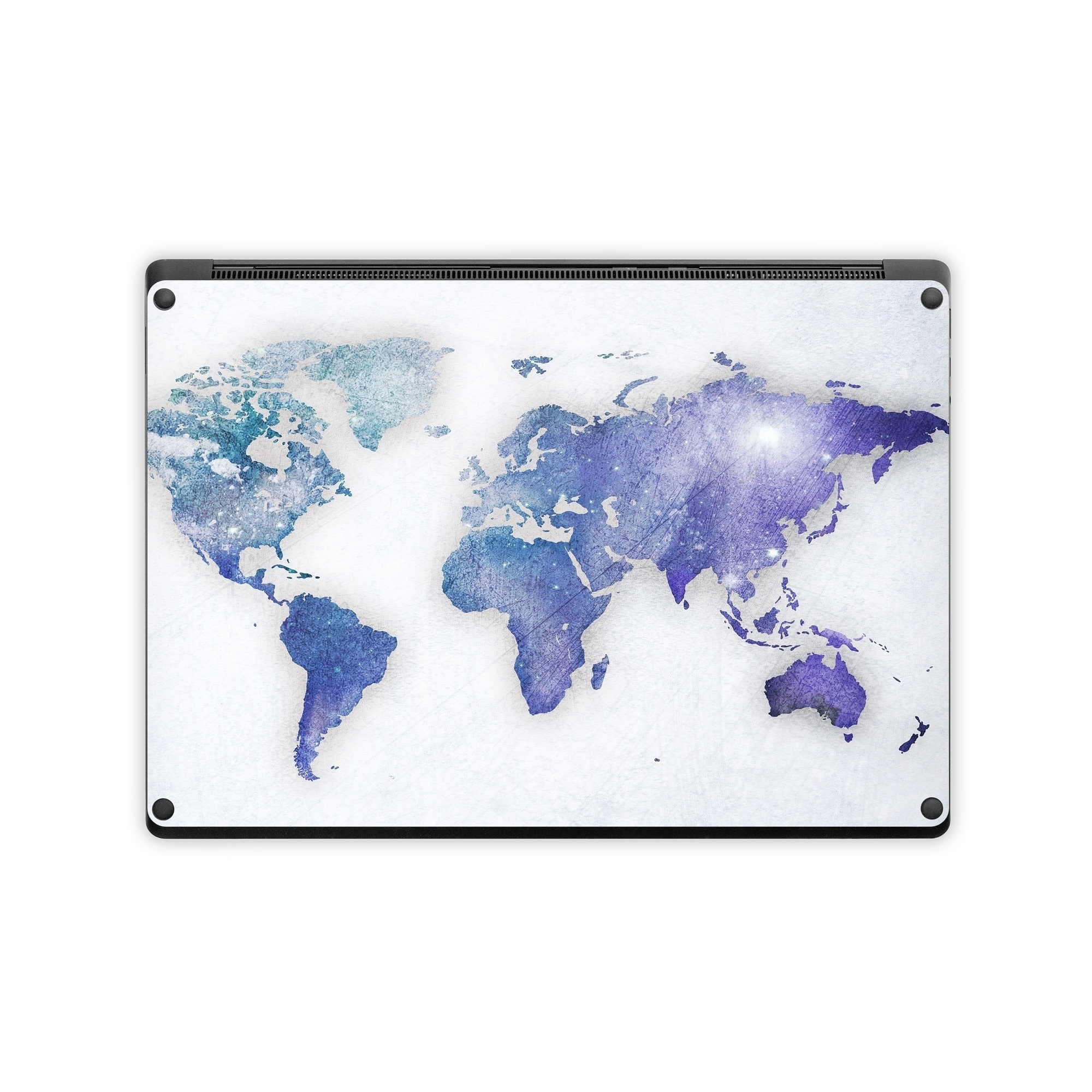 iStyles Microsoft Surface Laptop Series Skin design of World, Map, Watercolor paint, Illustration, with white, blue, purple colors, and tagged with maps, globe, map, pastel, travel, watercolor, world.