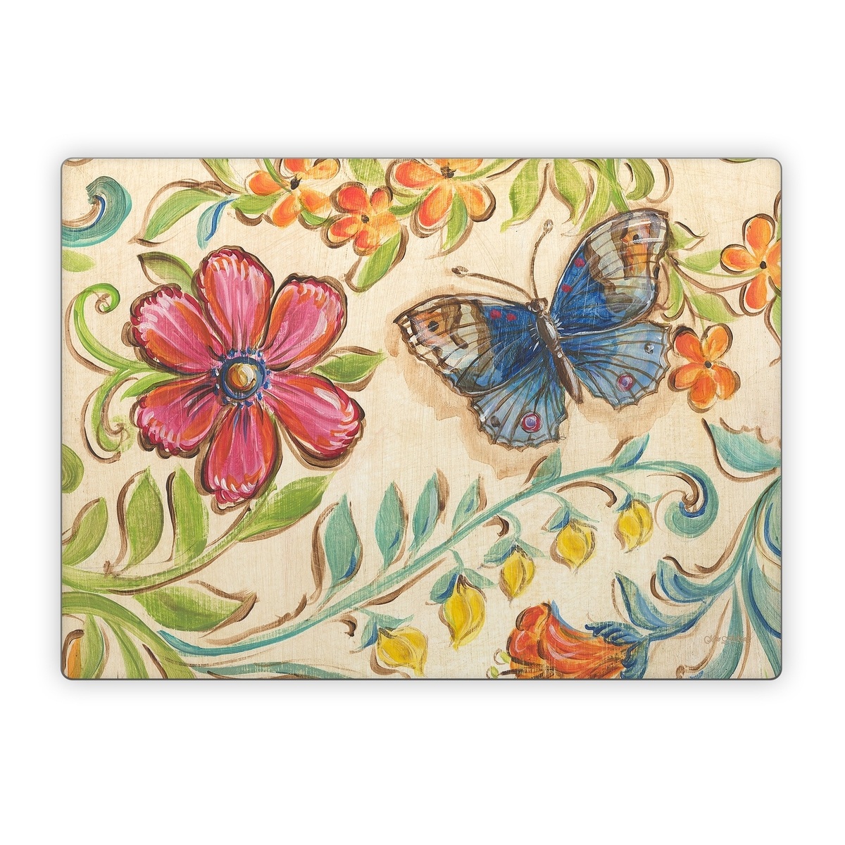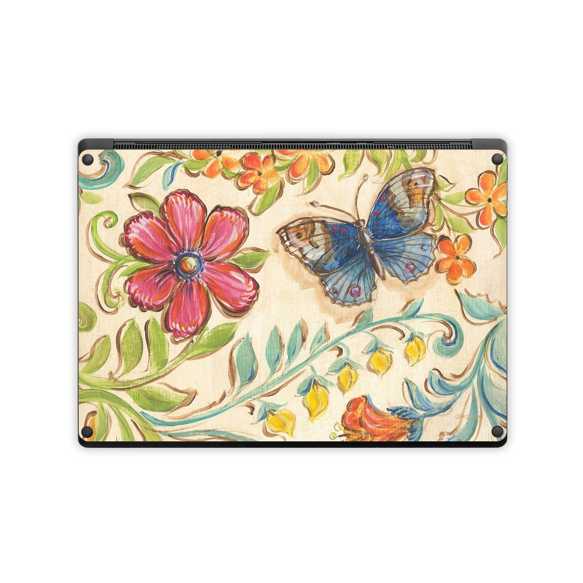 iStyles Microsoft Surface Laptop Series Skin design of Butterfly, Moths and butterflies, Insect, Pollinator, Plant, Pattern, Watercolor paint, Wildflower, Visual arts, Brush-footed butterfly, with gray, pink, green, red, orange, blue colors, and tagged with flowers, patterns, animals.