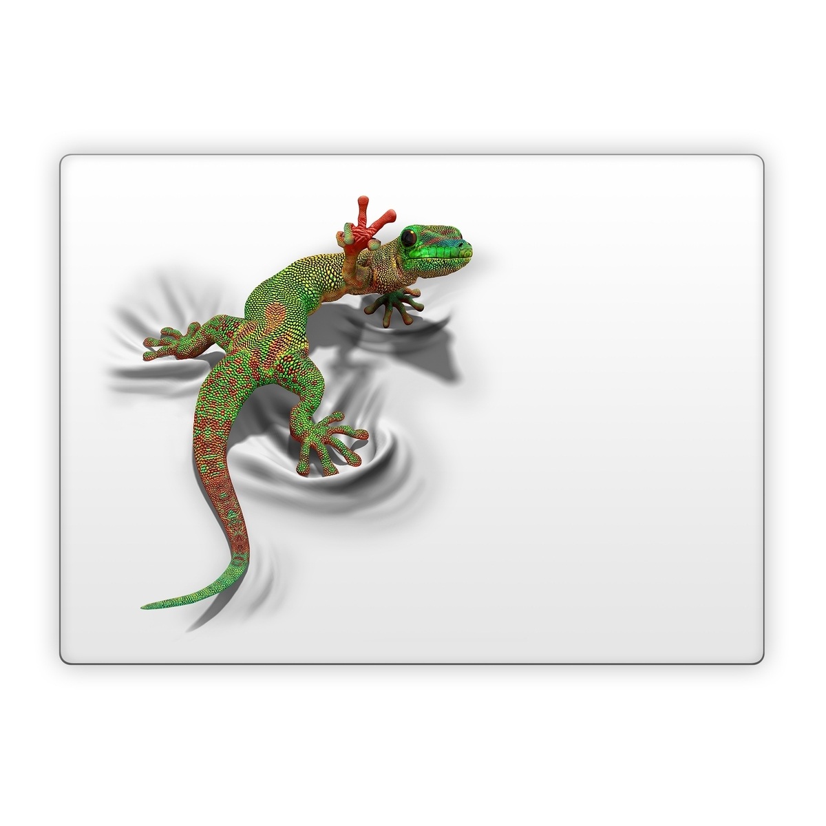 iStyles Microsoft Surface Laptop Series Skin design of Lizard, Reptile, Gecko, Scaled reptile, Green, Iguania, Animal figure, Wall lizard, Fictional character, Iguanidae, with white, gray, black, red, green colors, and tagged with animals.