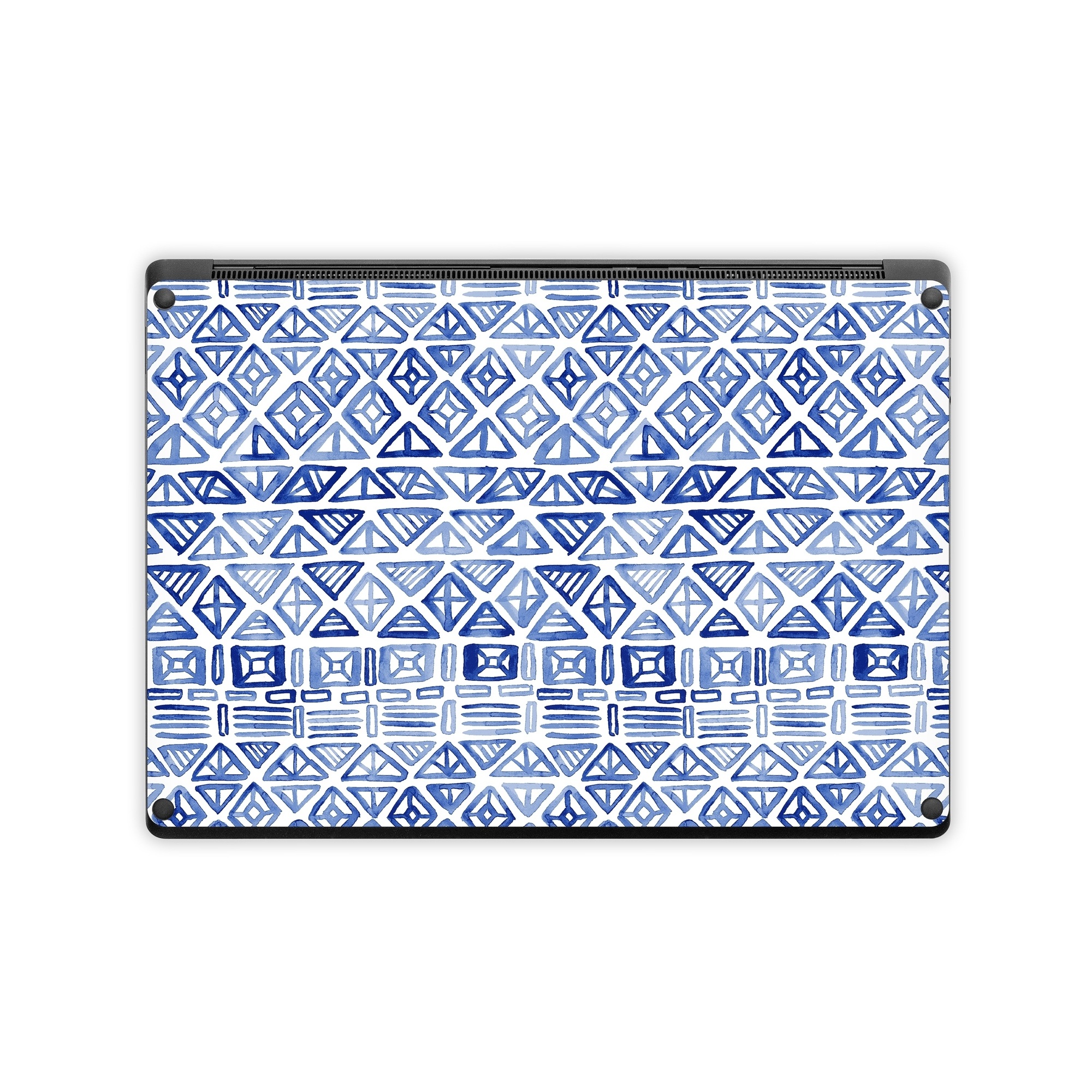 iStyles Microsoft Surface Laptop Series Skin design of Pattern, Line, Design, Symmetry, Visual arts, Parallel, with white, blue colors, and tagged with patterns, blue, geometric, magpiemoon, pattern, tribal, watercolor, white.