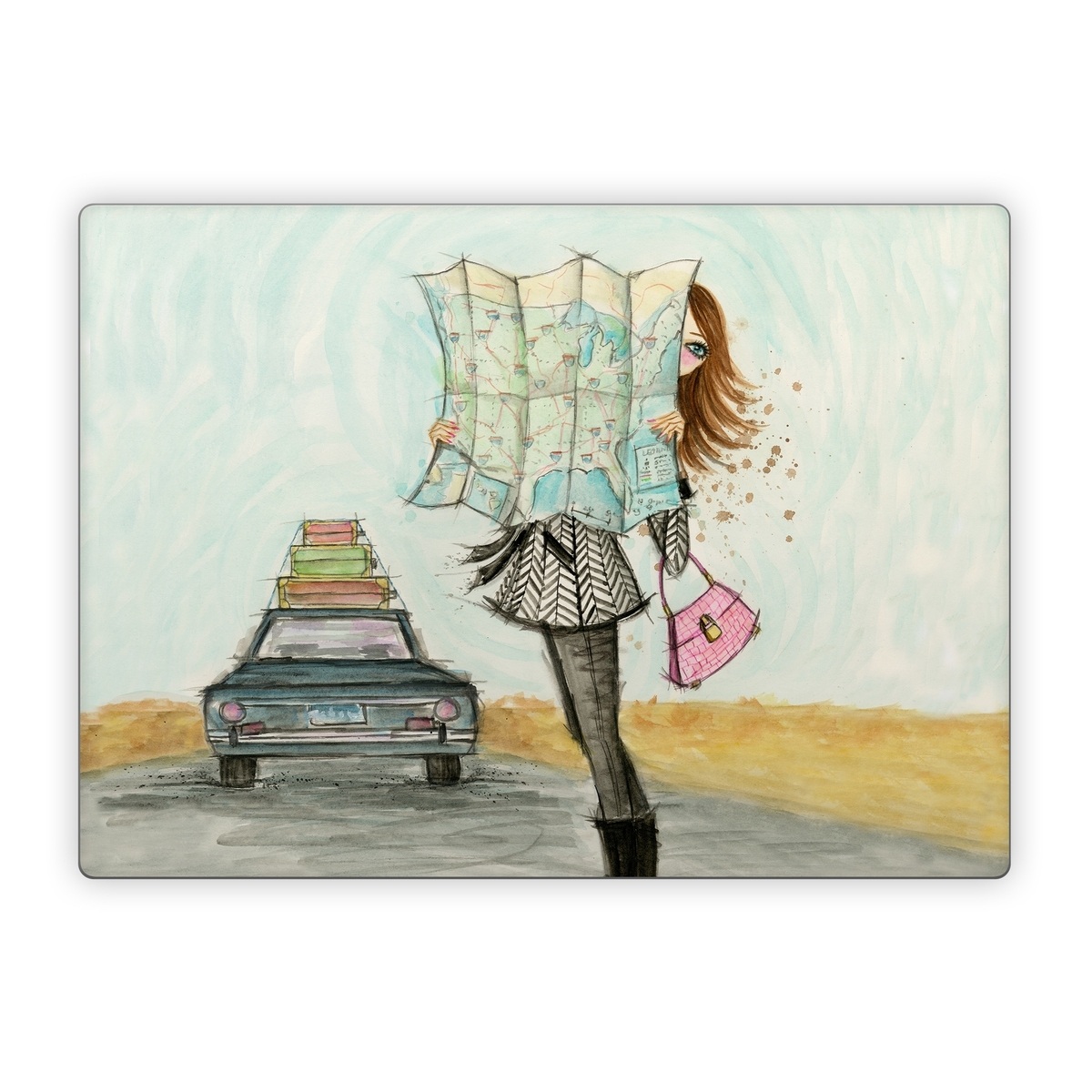 iStyles Microsoft Surface Laptop Series Skin design of Fashion illustration, Sketch, Watercolor paint, Illustration, Drawing, Art, Footwear, Vehicle, Painting, Fashion design, with blue, black, gray, white, pink, brown, green, orange, yellow colors, and tagged with people, fineart, objects, fashion, maps, adventure, driving, fashion, map, roadtrip.