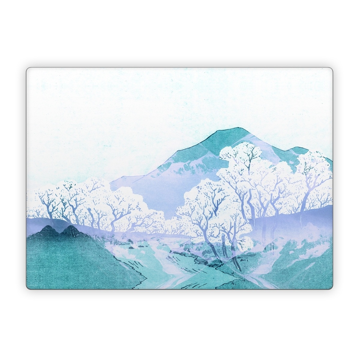 iStyles Microsoft Surface Laptop Series Skin design of Polar ice cap, Mountainous landforms, Glacial landform, Natural landscape, Mountain, Glacial lake, Glacier, Ice cap, Ice, Water, with white, blue, black colors, and tagged with nature, forest, mountain, river, trees.