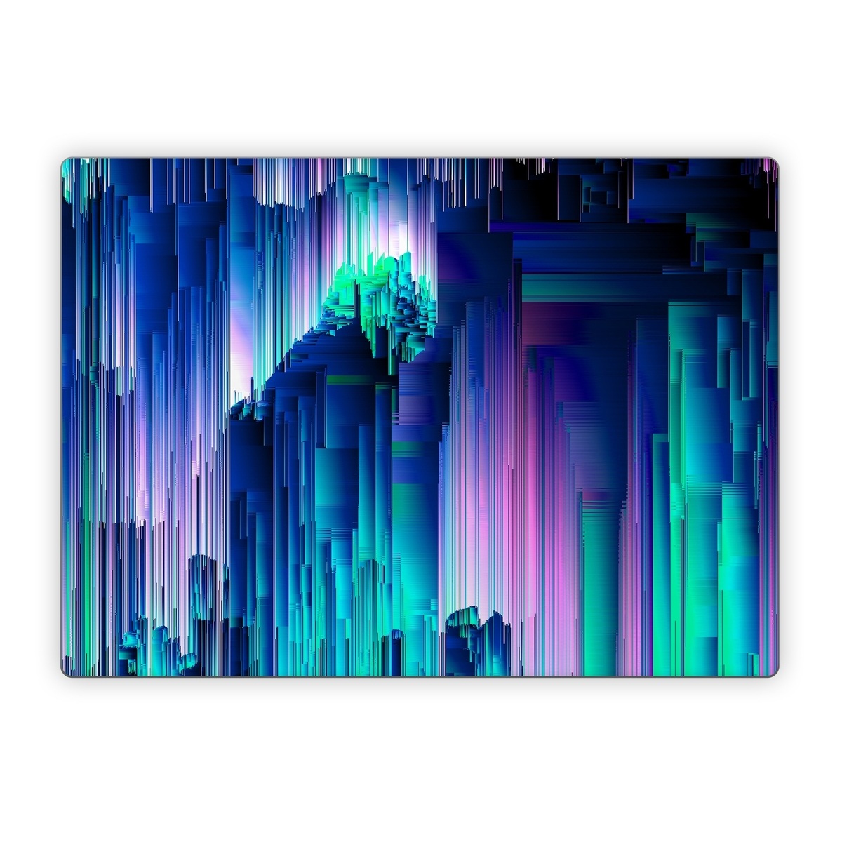 iStyles Microsoft Surface Laptop Series Skin design of Blue, Green, Light, Colorfulness, with blue, purple, pink, white colors, and tagged with abstract, space, blue, geometric, geometry, glitch, green, lines, matrix, pink, purple, space.
