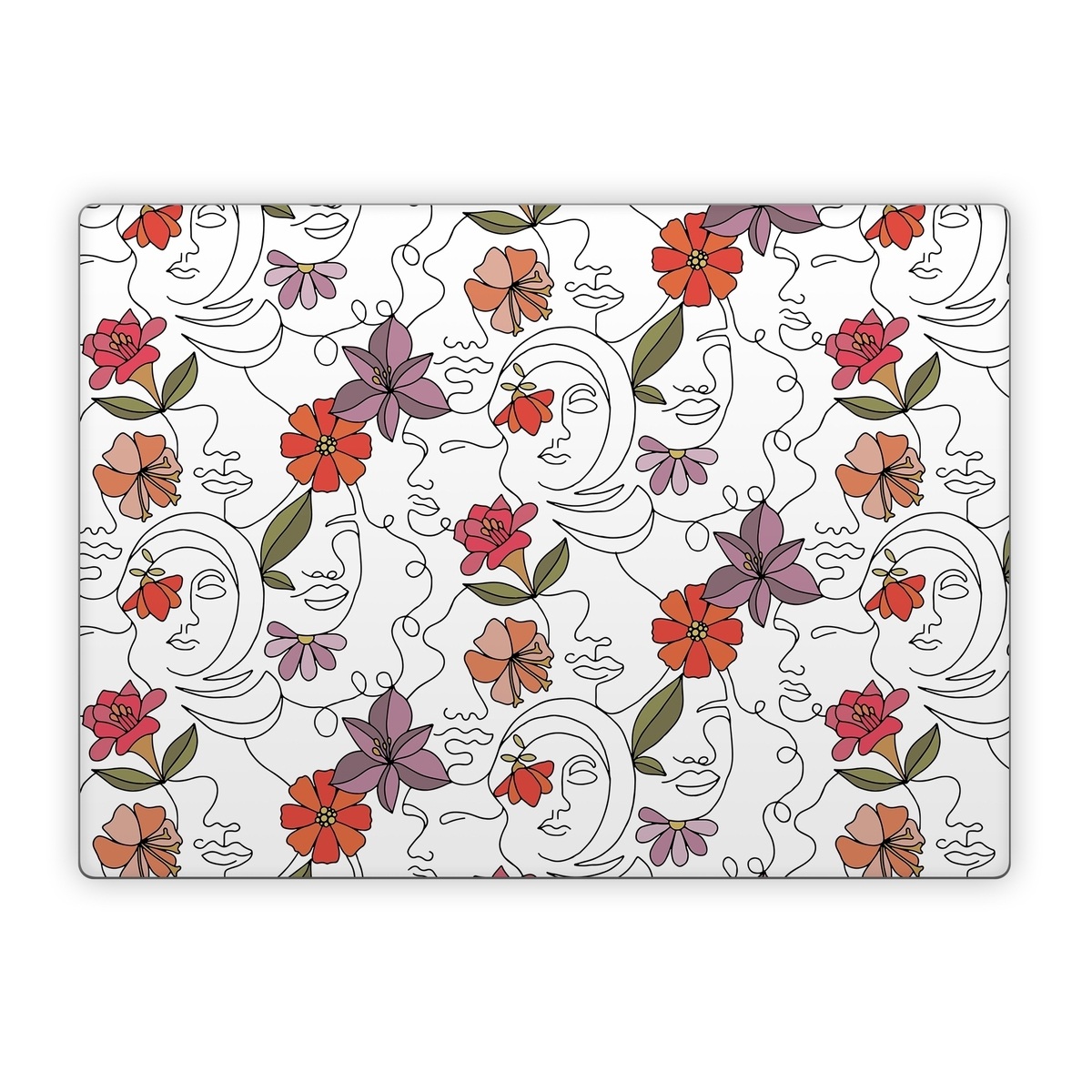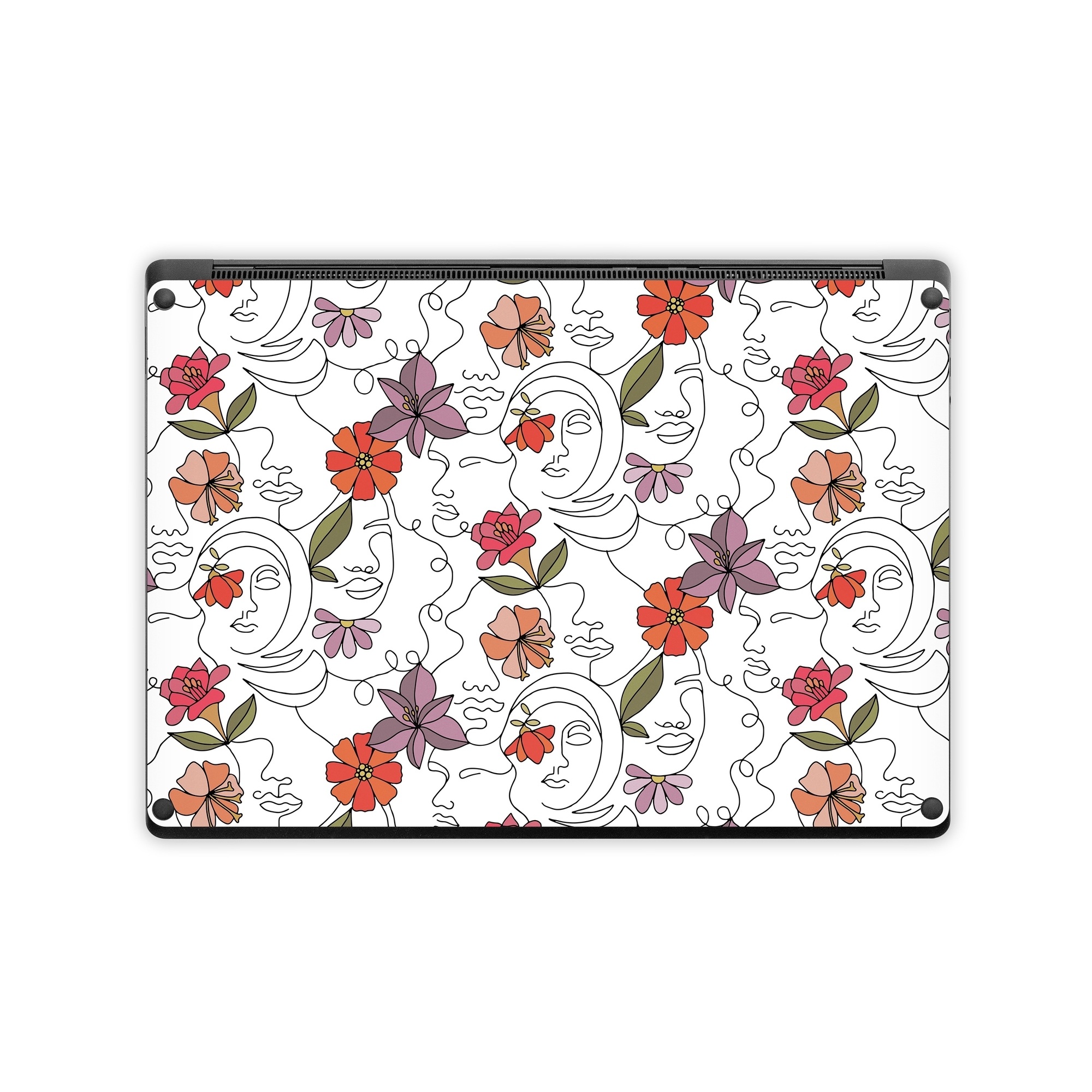 iStyles Microsoft Surface Laptop Series Skin design of Flower, Plant, White, Product, Petal, Branch, Rectangle, Botany, Textile, Creative arts, with white, red, purple, green, orange colors, and tagged with patterns, flowers, people, drawing, flowers, outline, pattern, women.