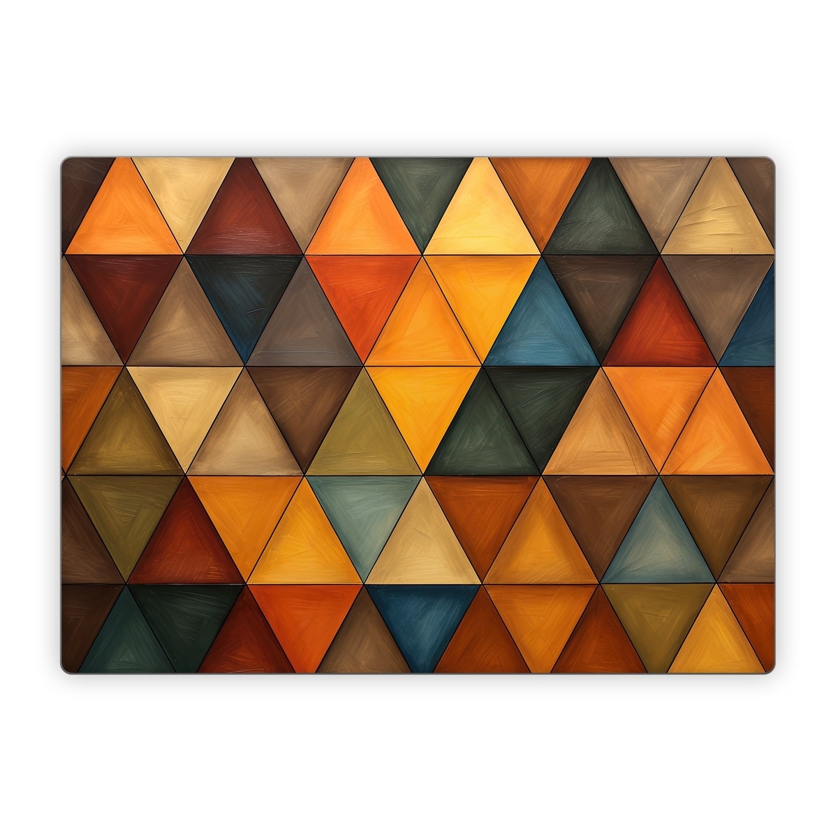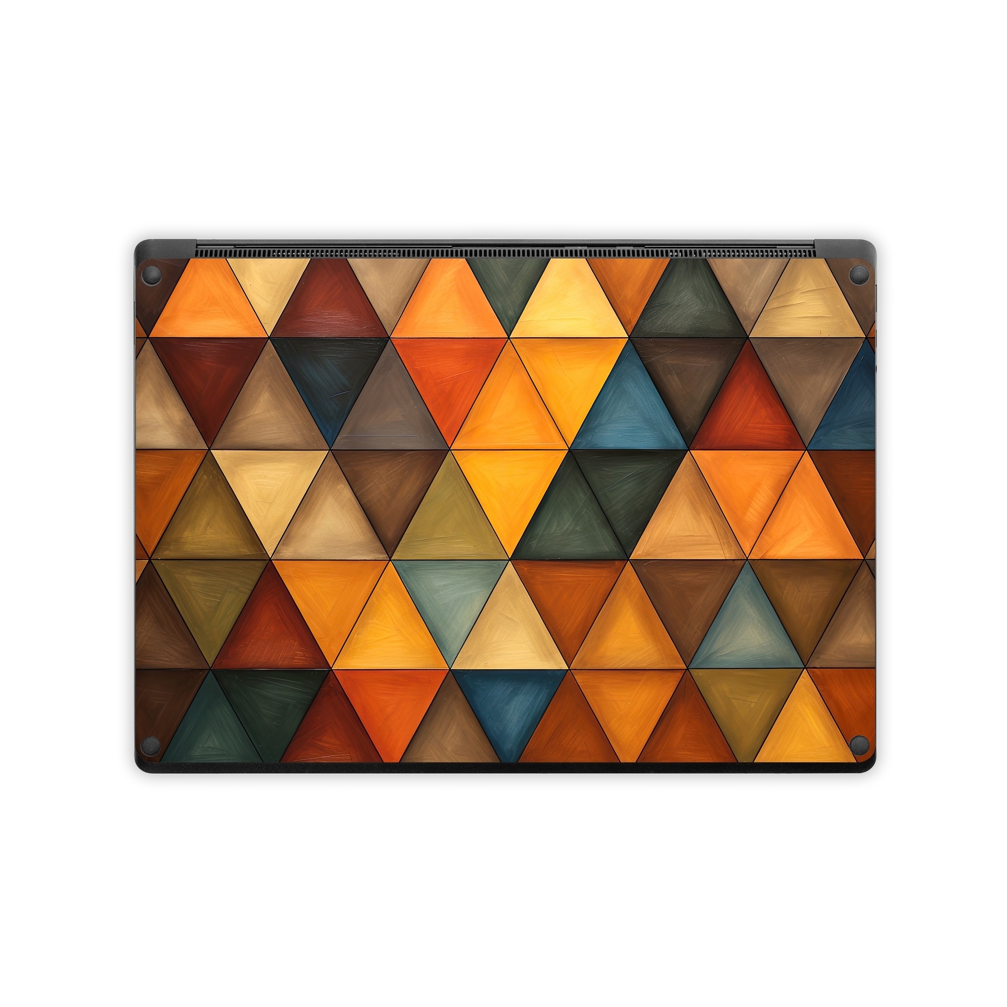 iStyles Microsoft Surface Laptop Series Skin design of Brown, Colorfulness, Rectangle, Azure, Amber, Orange, Triangle, Art, Flooring, Line, with yellow, orange, red, black, blue, brown colors, and tagged with patterns, autumn, fall, pattern, triangles.