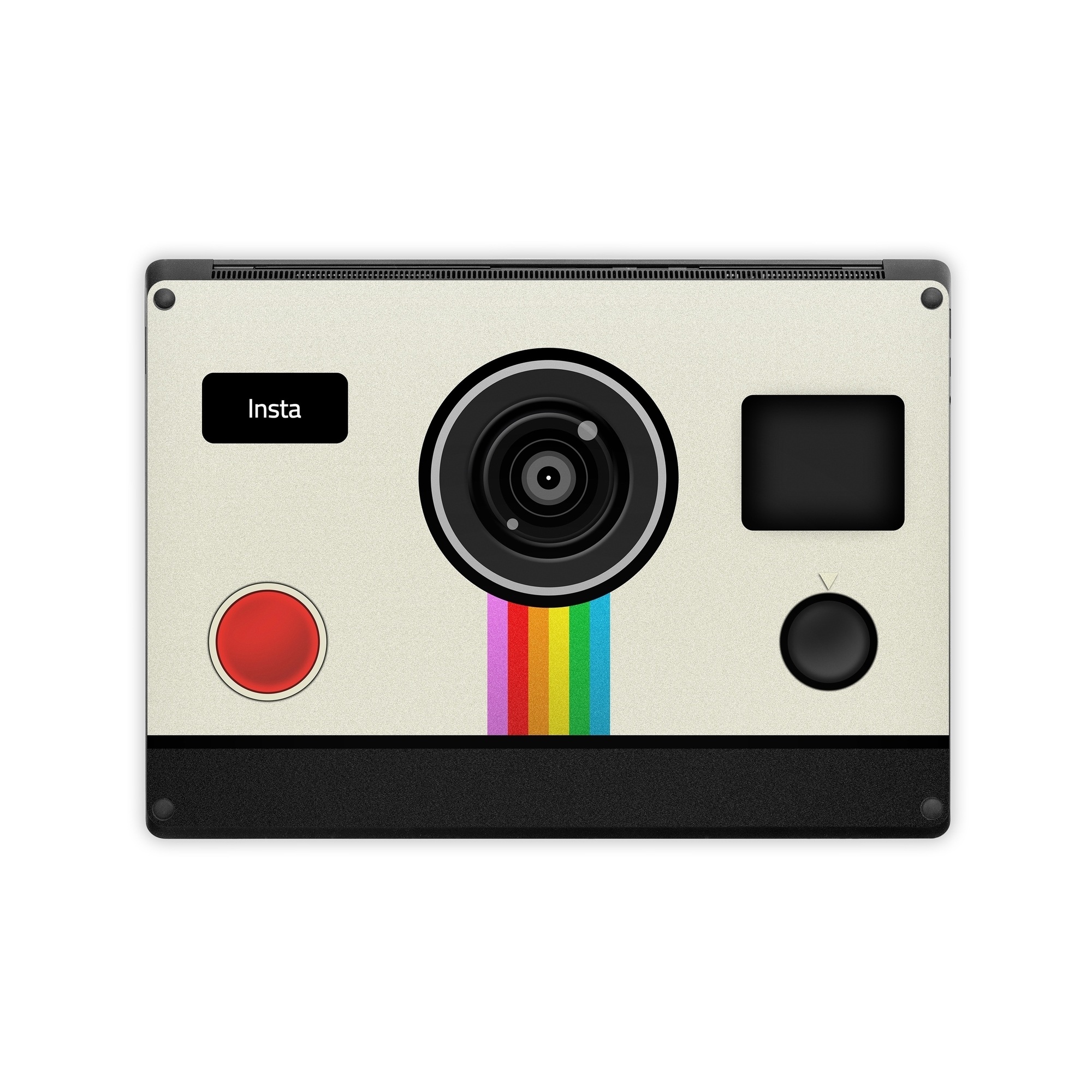iStyles Microsoft Surface Laptop Series Skin design of Cameras & optics, Camera, Technology, Circle, Electronic device, Electronics, Colorfulness, with gray, black, red colors, and tagged with objects, lookslike.
