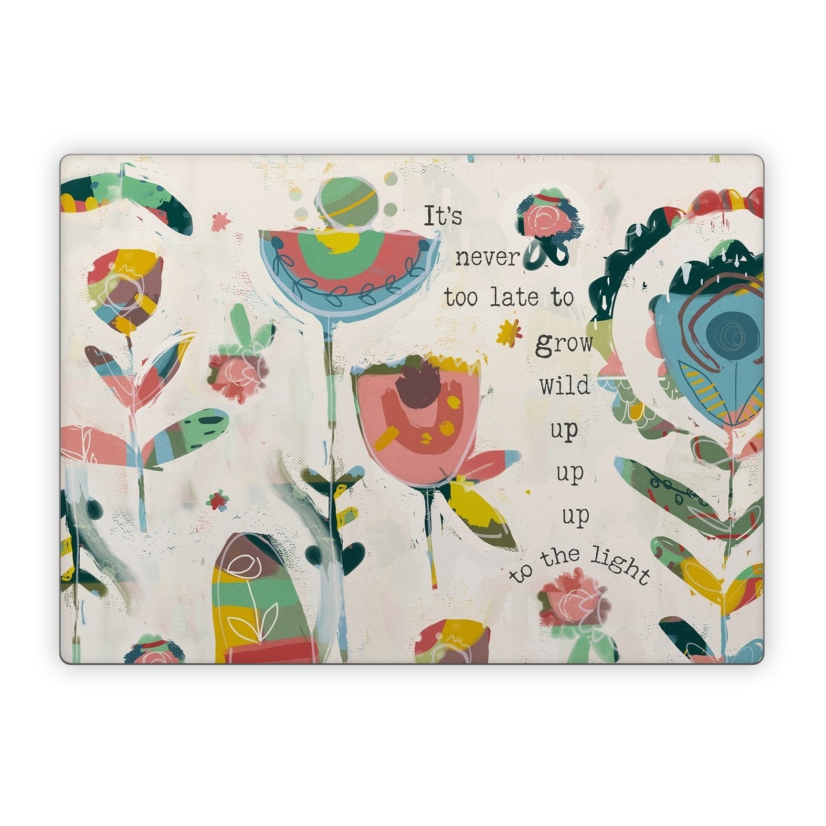 iStyles Microsoft Surface Laptop Series Skin design of Textile, Organism, Font, Creative arts, Art, Pattern, Illustration, Terrestrial plant, Painting, Drawing, with purple, black, green, yellow, blue, red colors, and tagged with signs, flowers, collage, inspiration, quote, quotes, scrapbook.