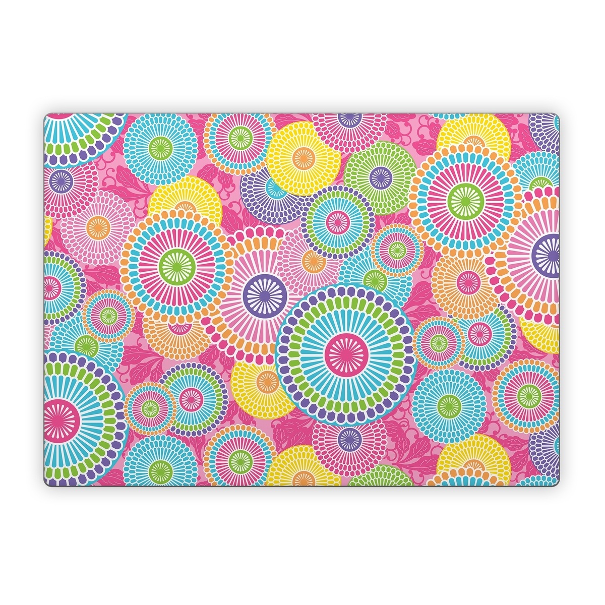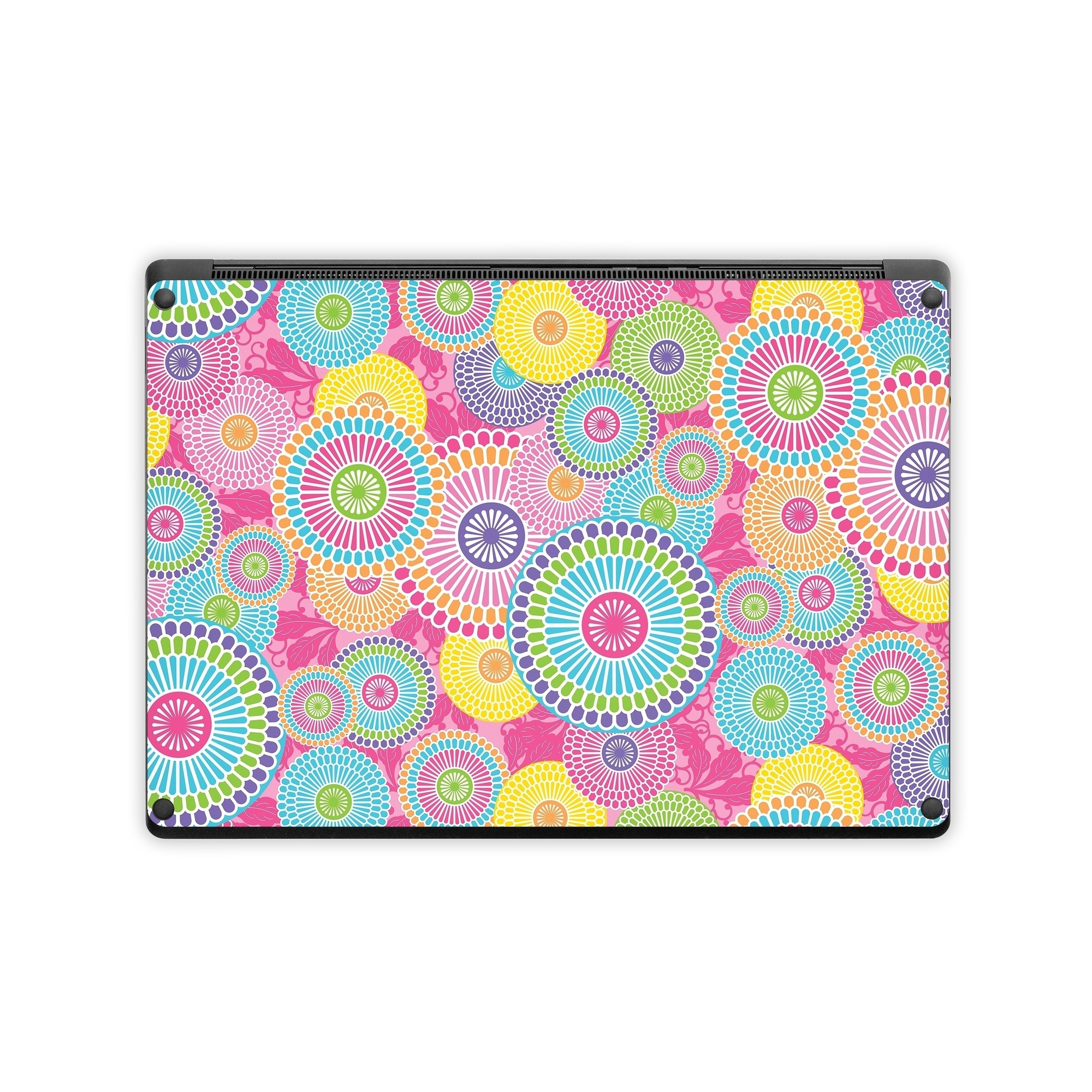 iStyles Microsoft Surface Laptop Series Skin design of Pattern, Circle, Textile, Design, Visual arts, Wrapping paper, with gray, pink, purple, orange, blue, green colors, and tagged with patterns, flowers.