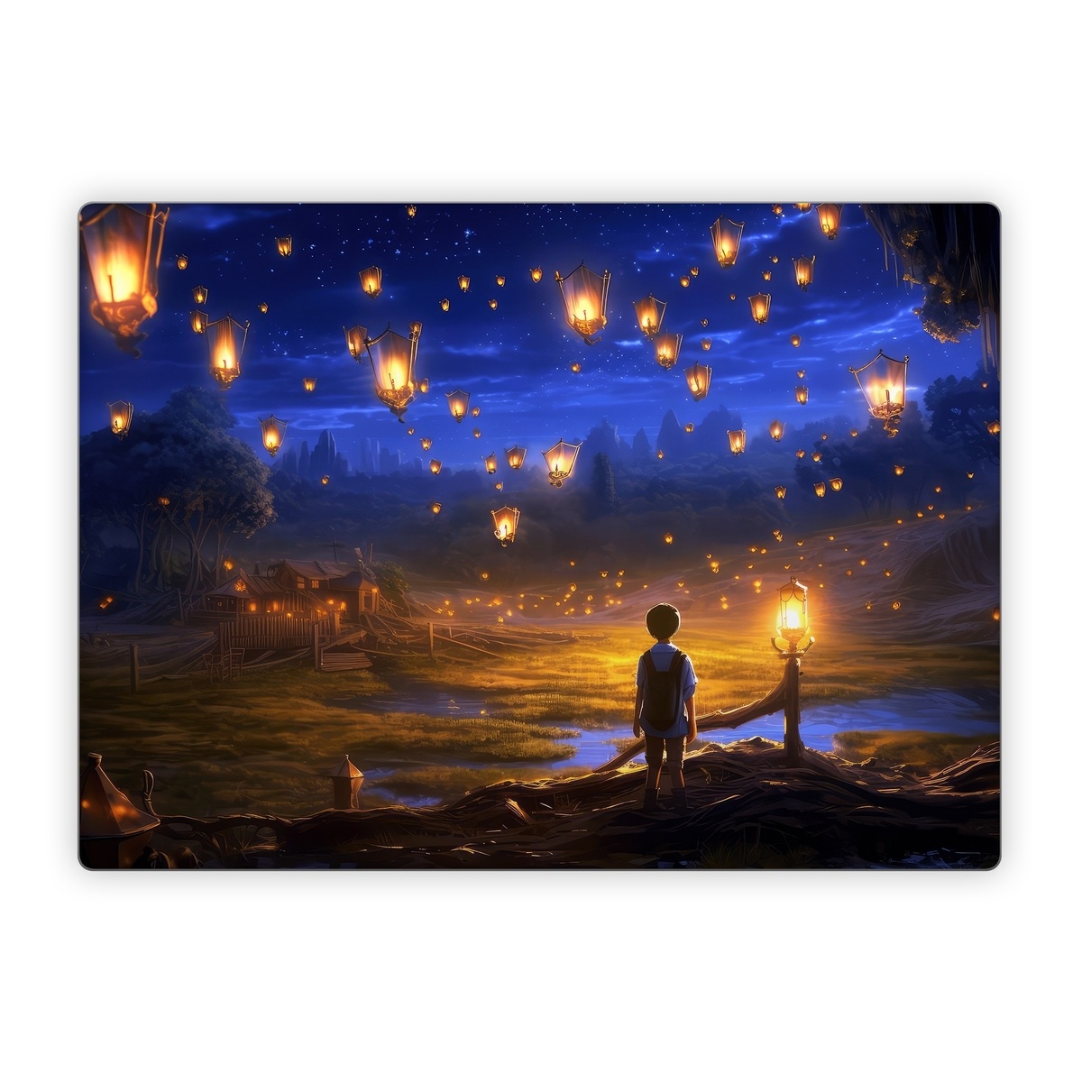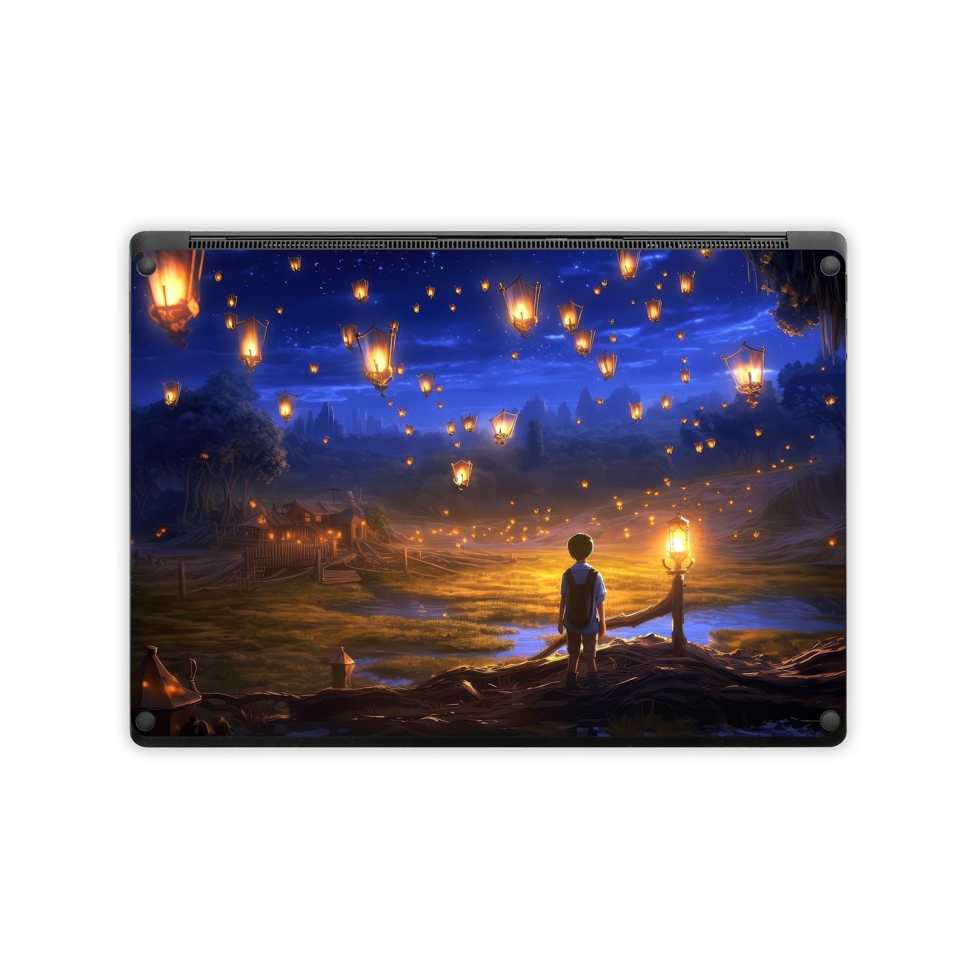 iStyles Microsoft Surface Laptop Series Skin design of Cloud, World, Nature, Sky, People in nature, Happy, Flash photography, Natural landscape, Horizon, Heat, with black, blue, orange, yellow, gray, purple, orange, green colors, and tagged with fineart, objects, people, fantasy, nature, urban, floating, lanterns, boy, sky, landscape.
