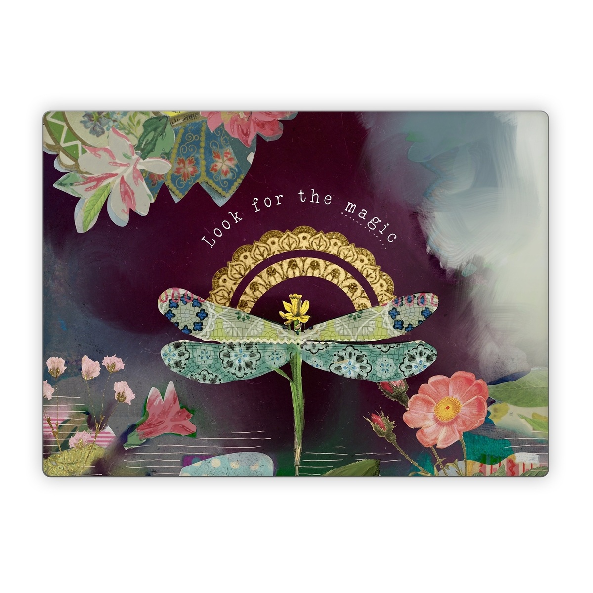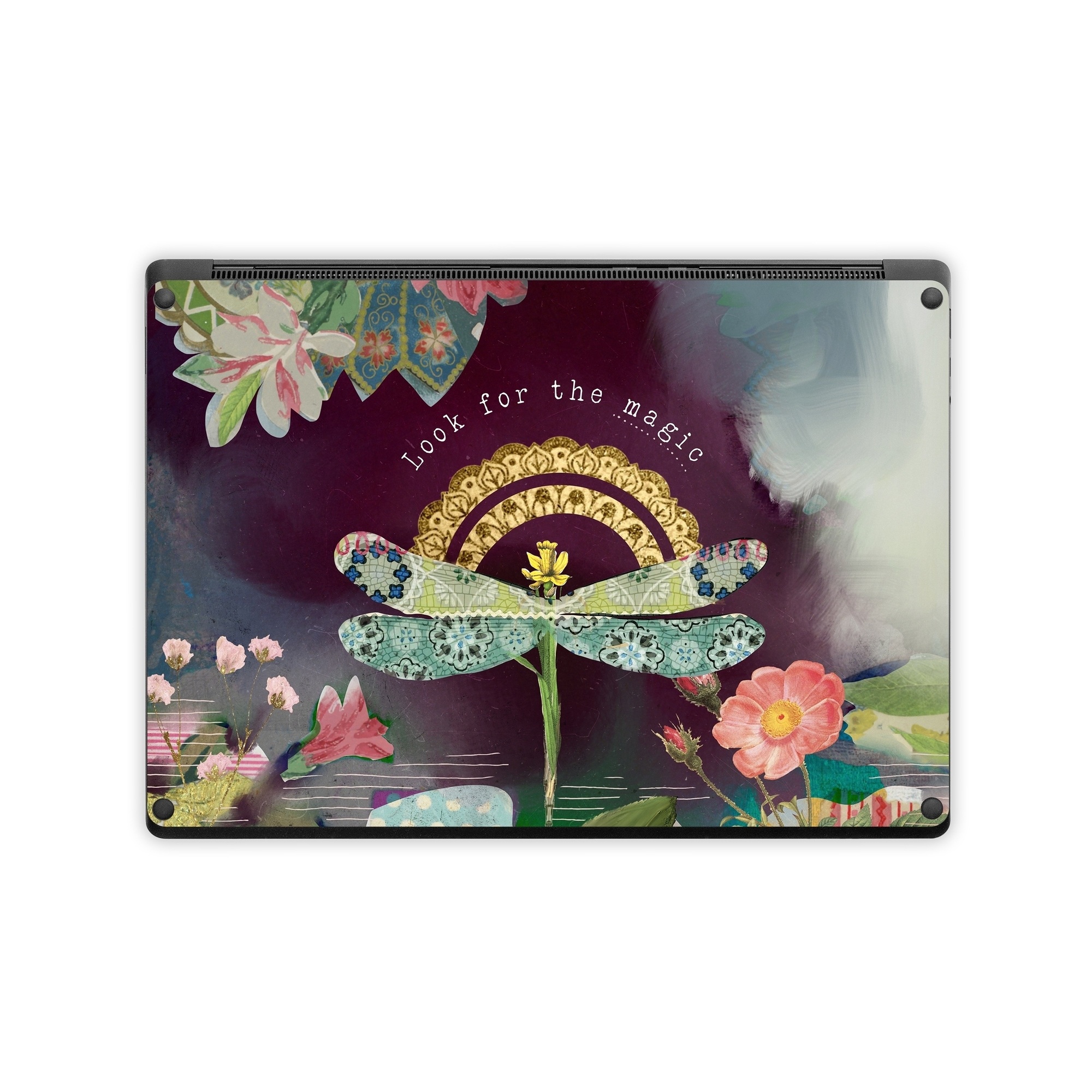 iStyles Microsoft Surface Laptop Series Skin design of Leaf, Textile, Plant, Art, Creative arts, Font, Poster, Painting, Pattern, Paint, with white, yellow, green, blue, pink, red colors, and tagged with signs, flowers, animals, dragonfly, flower, flowers, insect, inspiration, quote, quotes, scrapbook.
