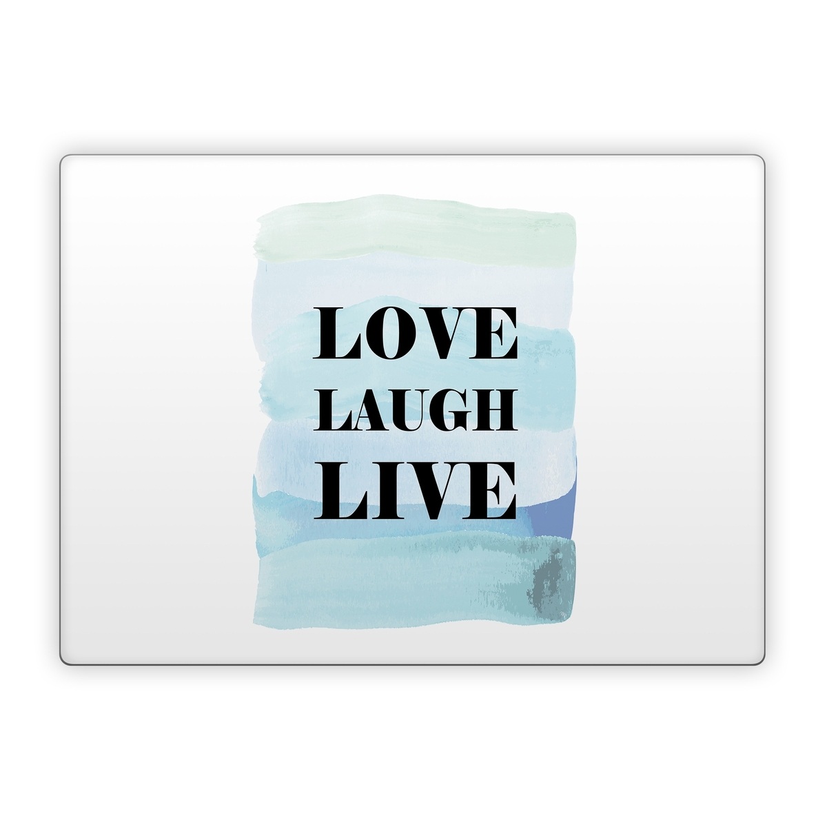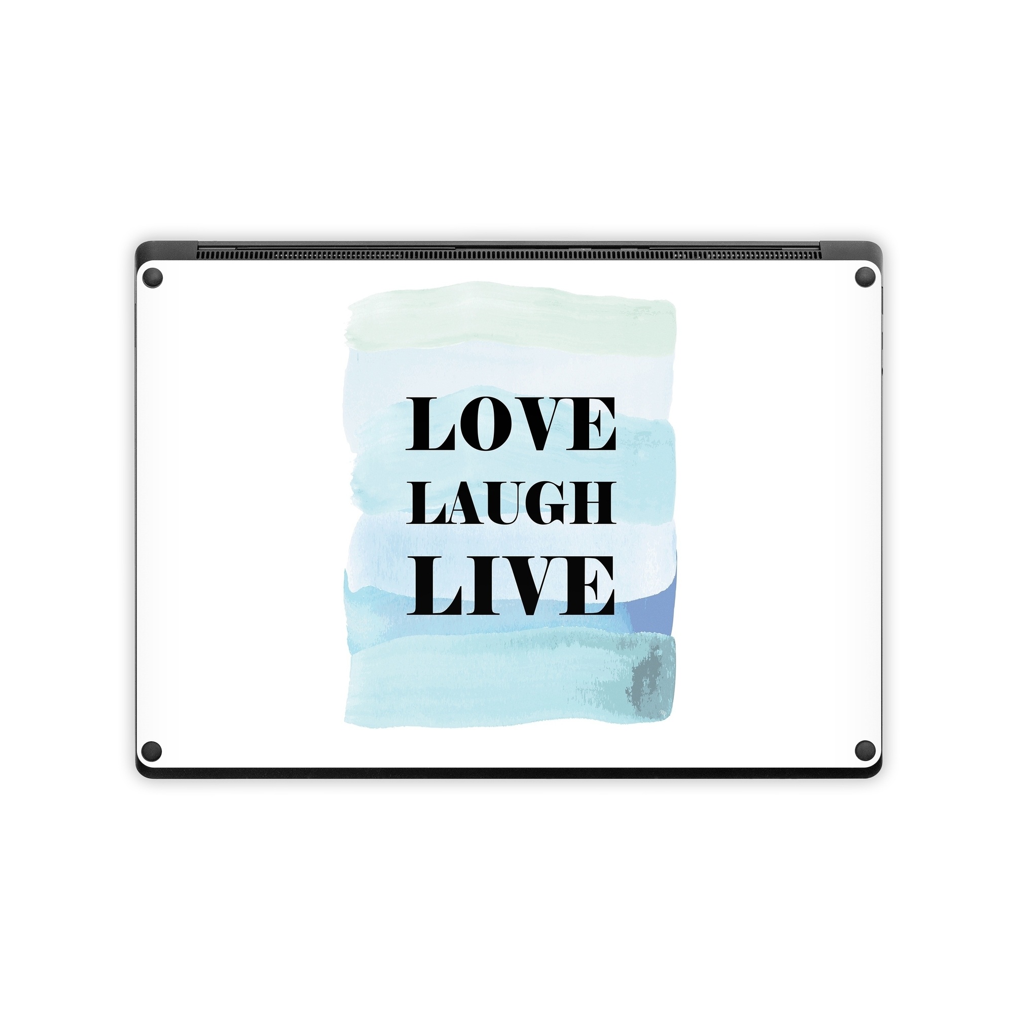 iStyles Microsoft Surface Laptop Series Skin design of Rectangle, Sleeve, Font, Linens, Pillow, Electric blue, Logo, Bedding, Facial hair, Brand, with white, black, blue, purple, green colors, and tagged with signs, blue, laugh, live, love.