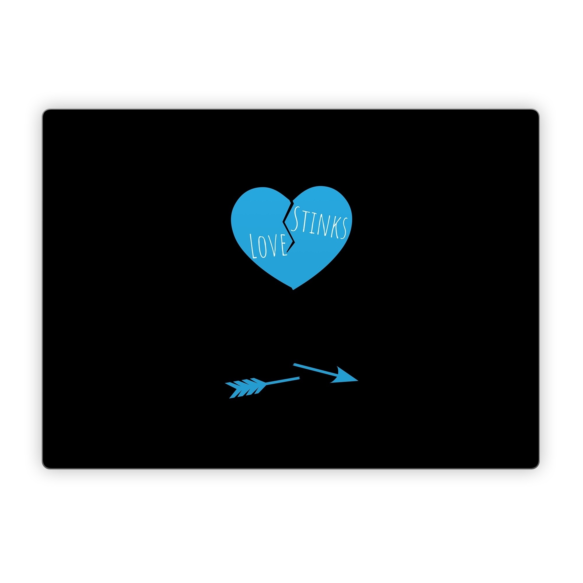 iStyles Microsoft Surface Laptop Series Skin design of Human body, Gesture, Font, Electric blue, Art, Magenta, Circle, Logo, Symbol, Pattern, with black, red, white colors, and tagged with objects, hearts, signs, broken, heart, arrow, love, stinks.