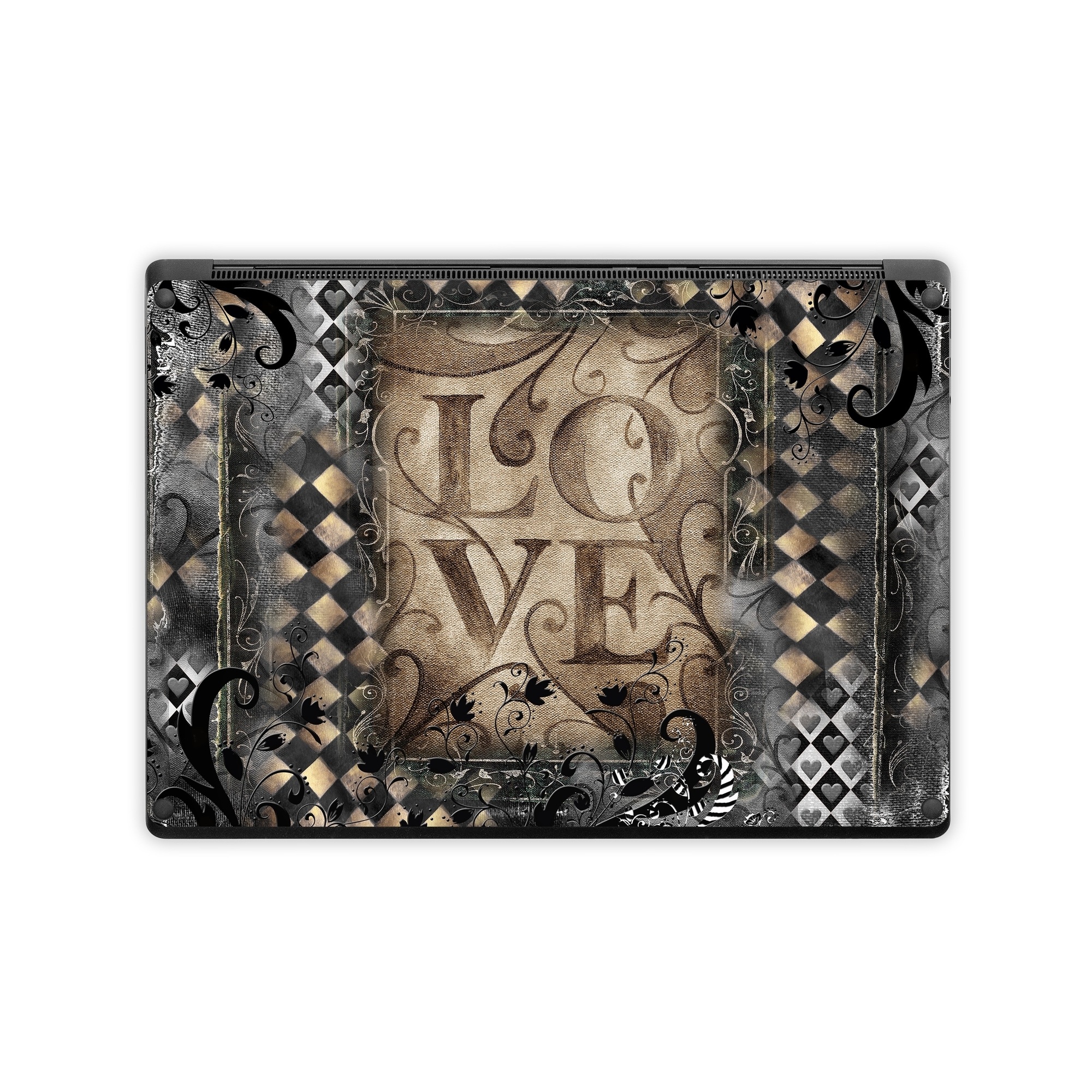 iStyles Microsoft Surface Laptop Series Skin design of Pattern, Brown, Design, Textile, Art, with black, gray, green, red colors, and tagged with patterns, hearts.