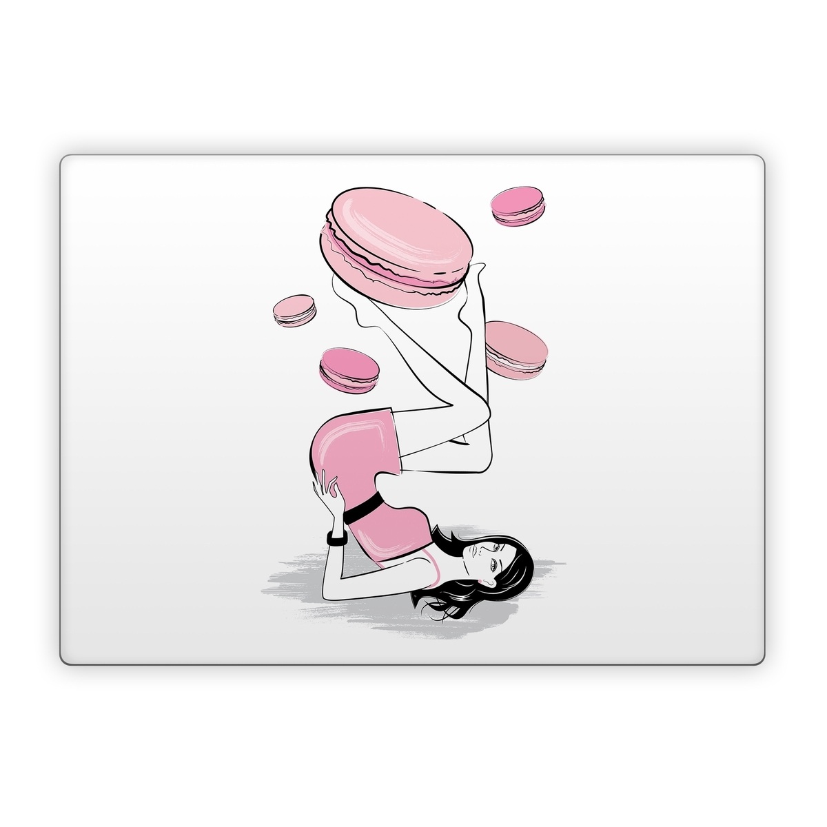 iStyles Microsoft Surface Laptop Series Skin design of Gesture, Pink, Cartoon, Happy, Art, Red, Font, Elbow, Magenta, Thumb, with white, black, pink, gray colors, and tagged with objects, people, girl, macaron, pink.