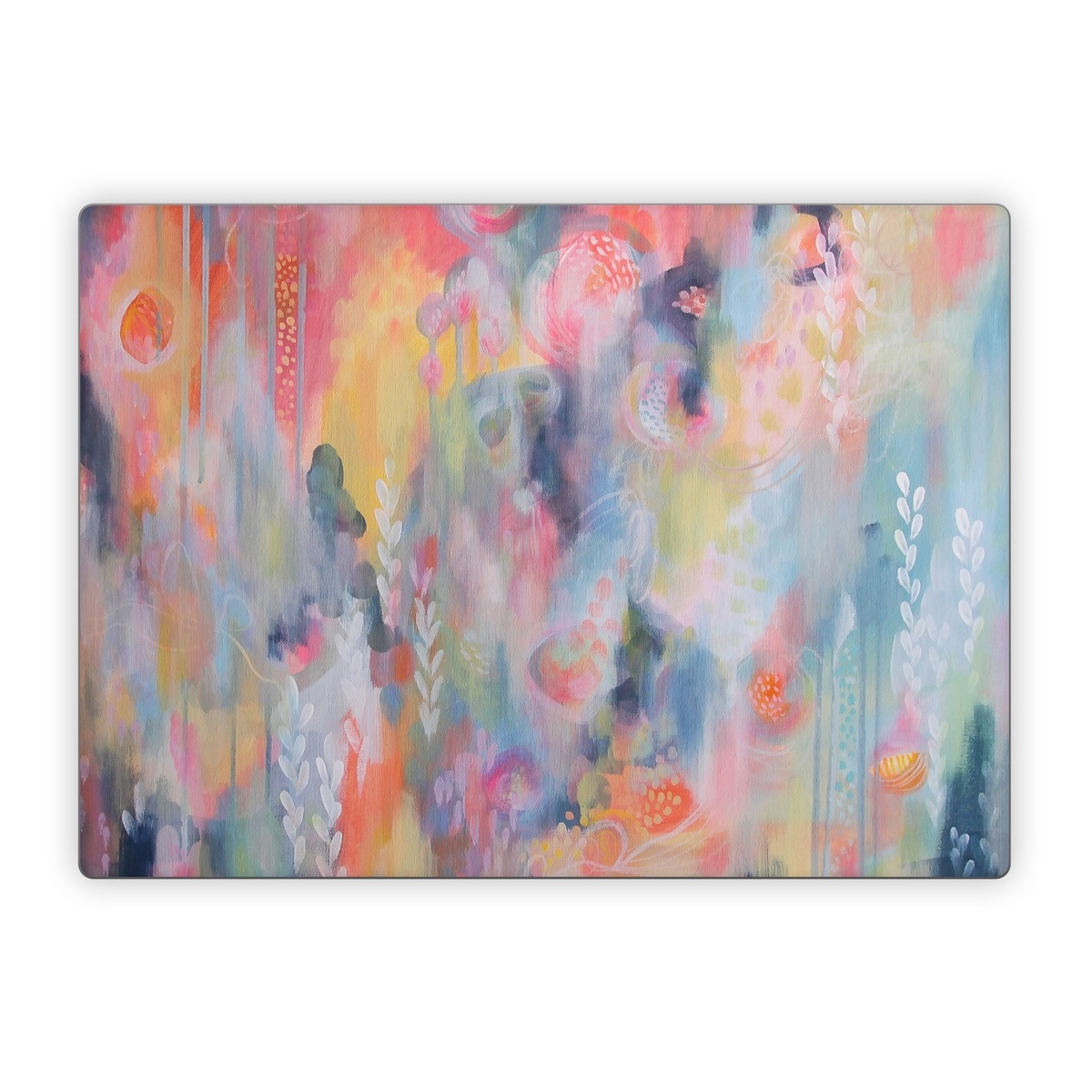 iStyles Microsoft Surface Laptop Series Skin design of Painting, Watercolor paint, Modern art, Acrylic paint, Art, Visual arts, Paint, Artwork, Dye, with blue, pink, orange, yellow, red, white colors, and tagged with flowers, patterns, abstract, abstract, canvas, paint, painting, pastel, watercolor.