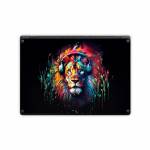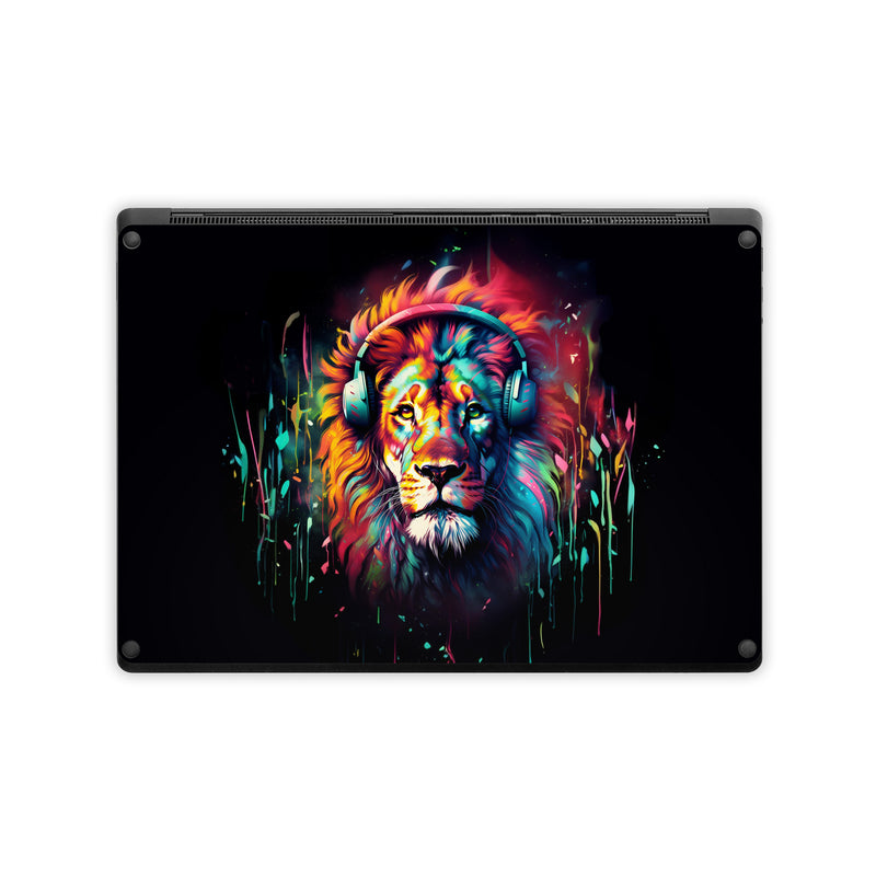 iStyles Microsoft Surface Laptop Series Skin design of Felidae, Siberian tiger, Bengal tiger, Carnivore, Big cats, Tiger, Painting, Art, Font, Paint, with black, red, yellow, orange, green, blue, pink colors, and tagged with animals, fantasy, objects, lion, headphones.