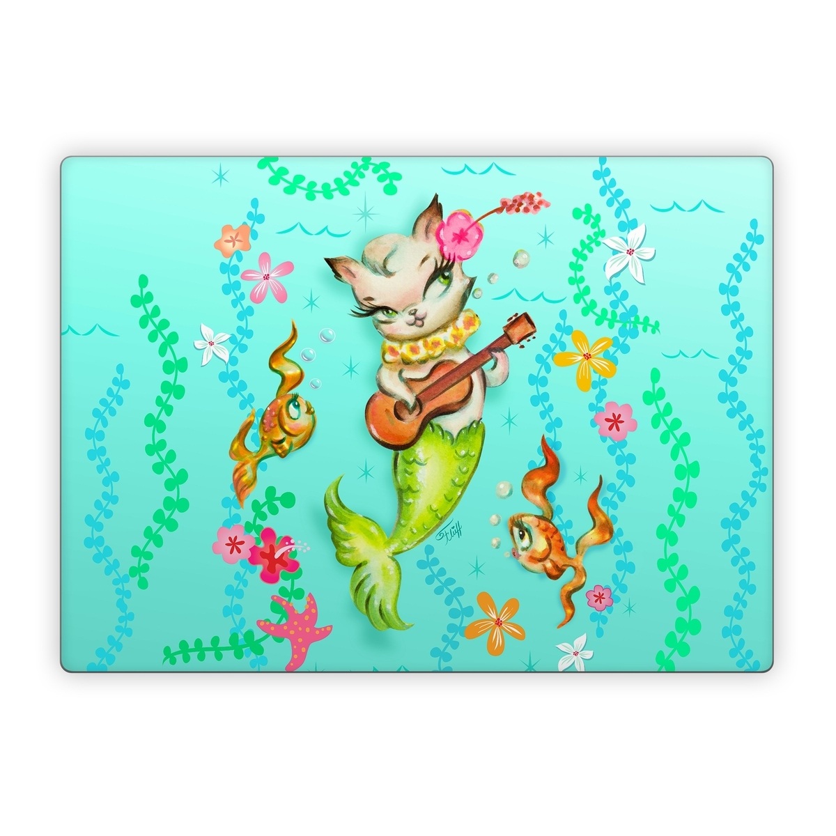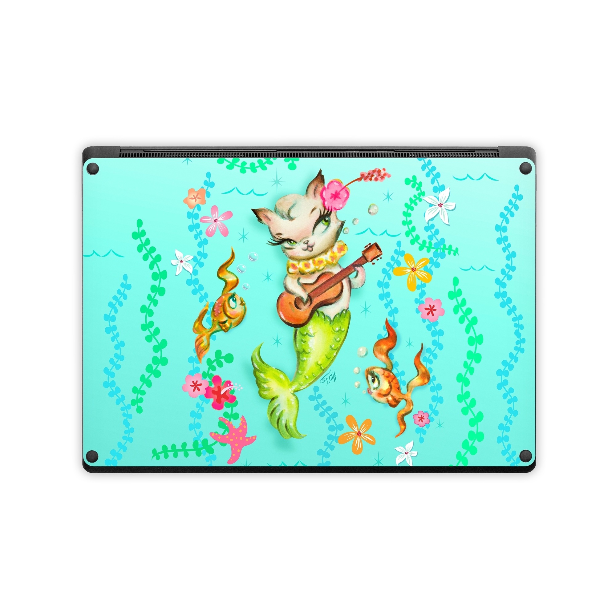 iStyles Microsoft Surface Laptop Series Skin design of Fictional character, Illustration, Mermaid, Mythical creature, Clip art, Art, with blue, green, pink, yellow, orange, white, gray, brown colors, and tagged with fantasy, animals, flowers, nature, objects, animal, animals, beach, cat, floral, flowers, kitten, mermaid, music, ocean, pastel, pinup, pinupgirl, pinupstyle, sealife.