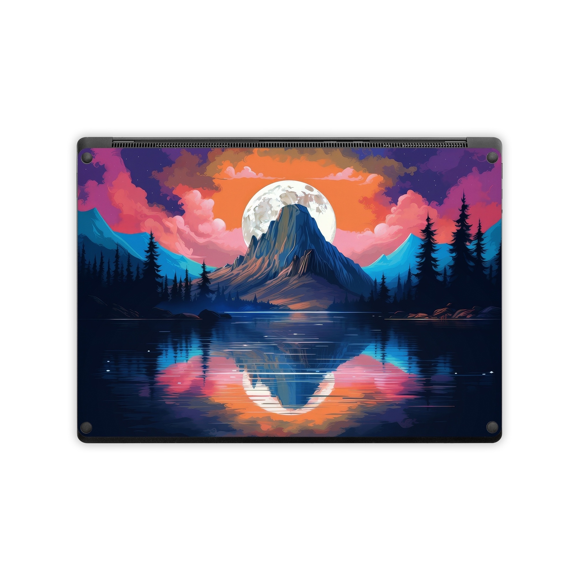 iStyles Microsoft Surface Laptop Series Skin design of Water, Sky, Cloud, Daytime, World, Mountain, Natural Landscape, Azure, Paint, Plant, Tree, with black, blue, red, yellow, orange, pink, purple colors, and tagged with nature, space, mountains, landscape, moon, clouds, lake, reflection.