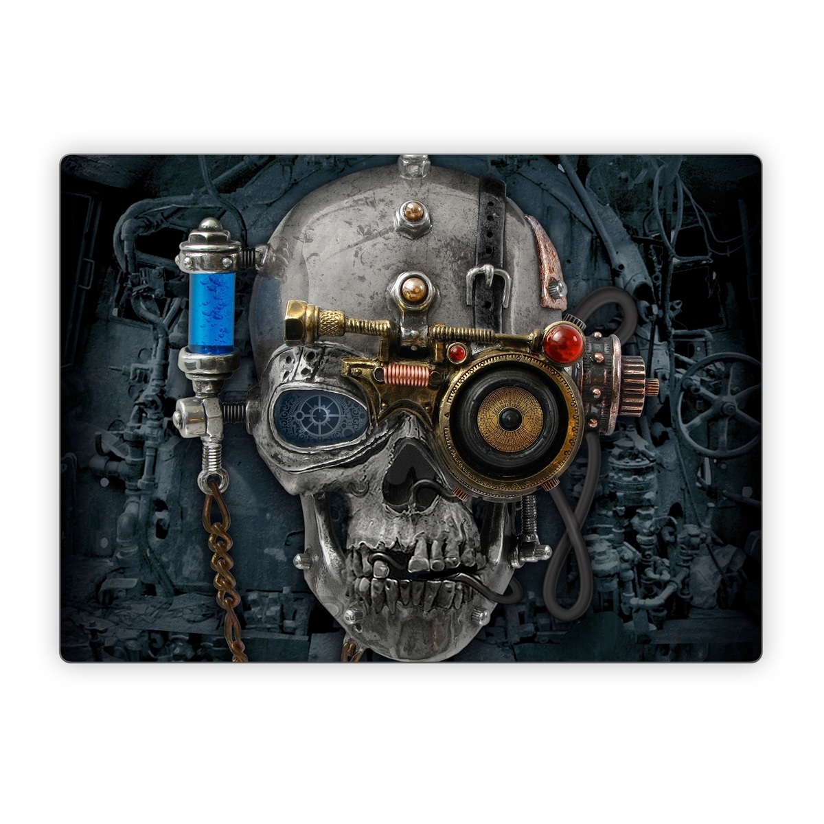 iStyles Microsoft Surface Laptop Series Skin design of Engine, Auto part, Still life photography, Personal protective equipment, Illustration, Automotive engine part, Art, with black, gray, red, green colors, and tagged with skulls, objects.