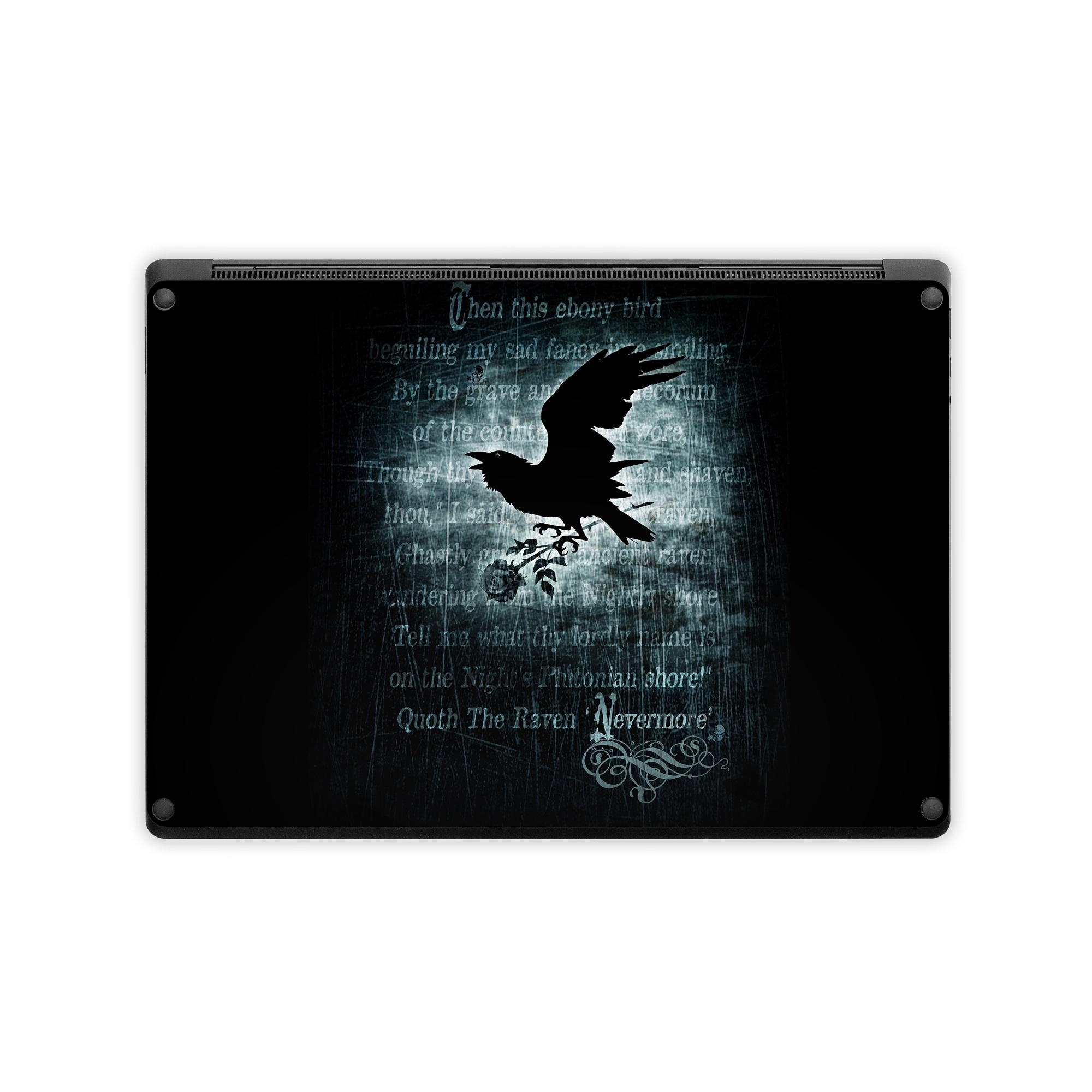 iStyles Microsoft Surface Laptop Series Skin design of Bird, Text, Wing, Graphic design, Darkness, Font, Illustration, Graphics, with black, white, blue colors, and tagged with signs, flowers.