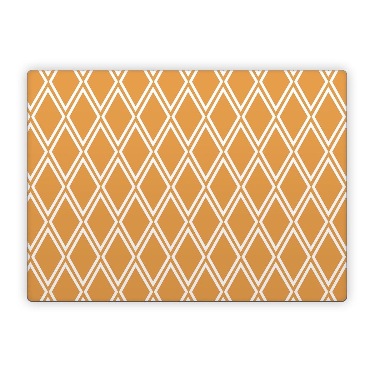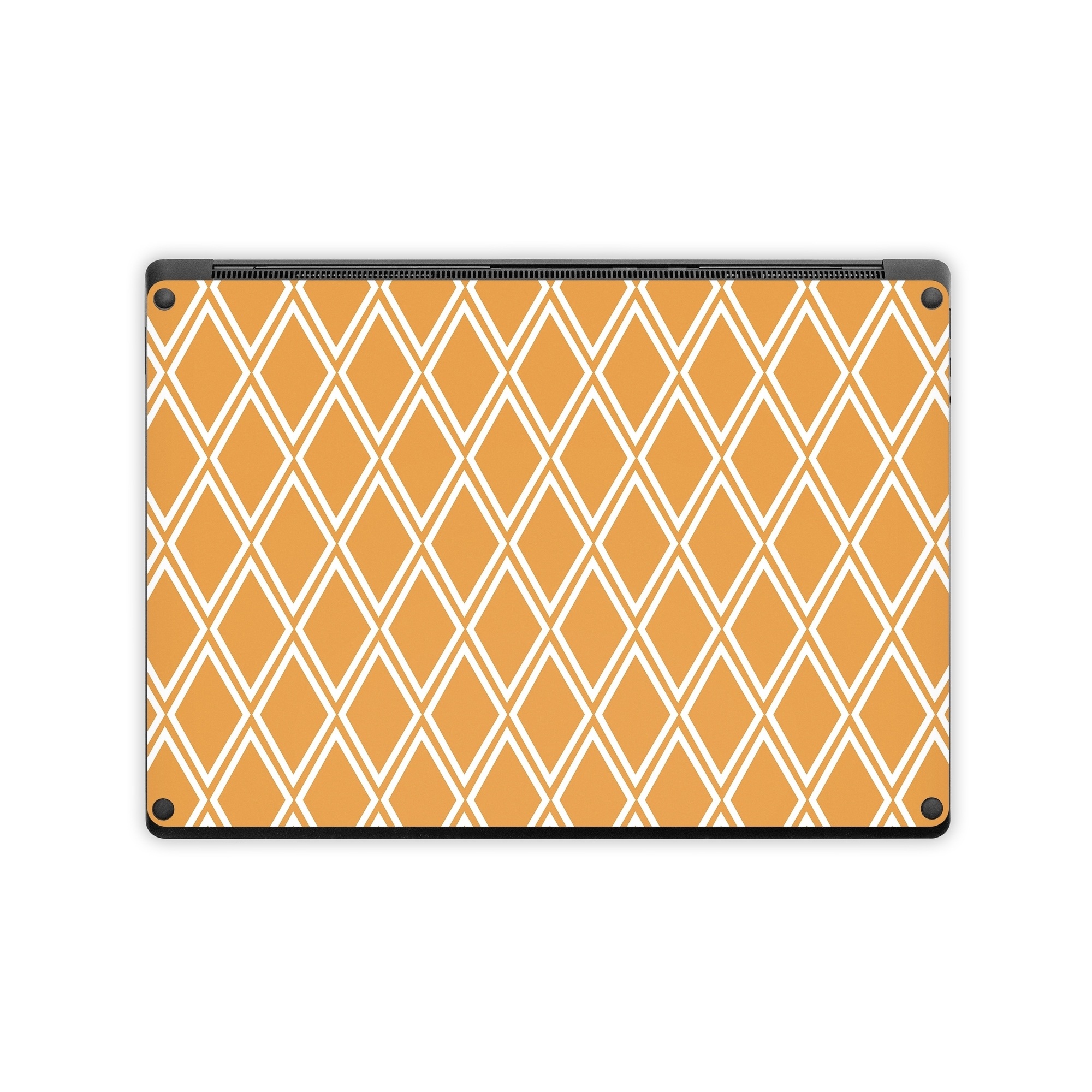 iStyles Microsoft Surface Laptop Series Skin design of Textile, Orange, Font, Material property, Symmetry, Rectangle, Pattern, Circle, Parallel, Tints and shades, with orange, white colors, and tagged with patterns, checks.