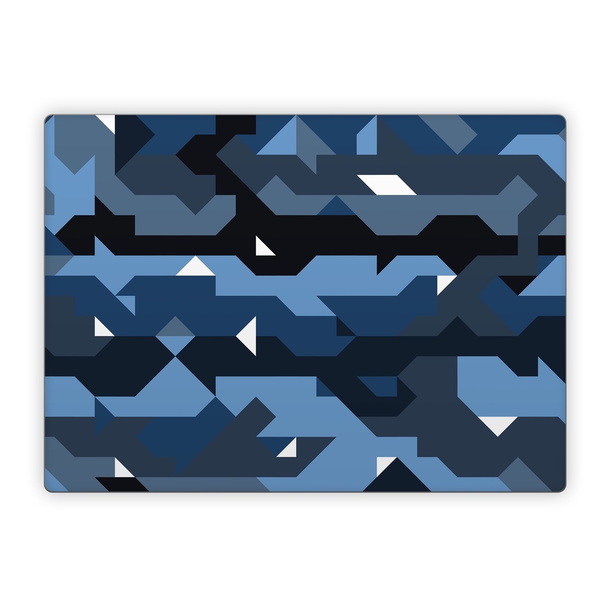 iStyles Microsoft Surface Laptop Series Skin design of Blue, Pattern, Design, Font, Line, Camouflage, Illustration, Triangle, with blue, black, white, gray colors, and tagged with patterns, military, blue, camo, digitalcamo, geometric.