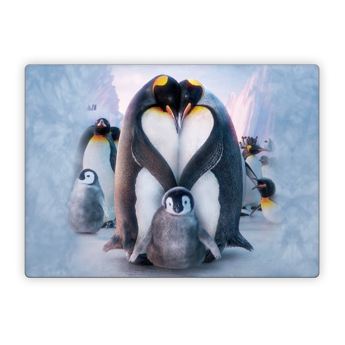 iStyles Microsoft Surface Laptop Series Skin design of Bird, Vertebrate, Flightless bird, Penguin, Gentoo penguin, Emperor penguin, King penguin, Beak, Wildlife, Arctic, with gray, black, blue, purple colors, and tagged with animals, animals, arctic, heart, penguin.