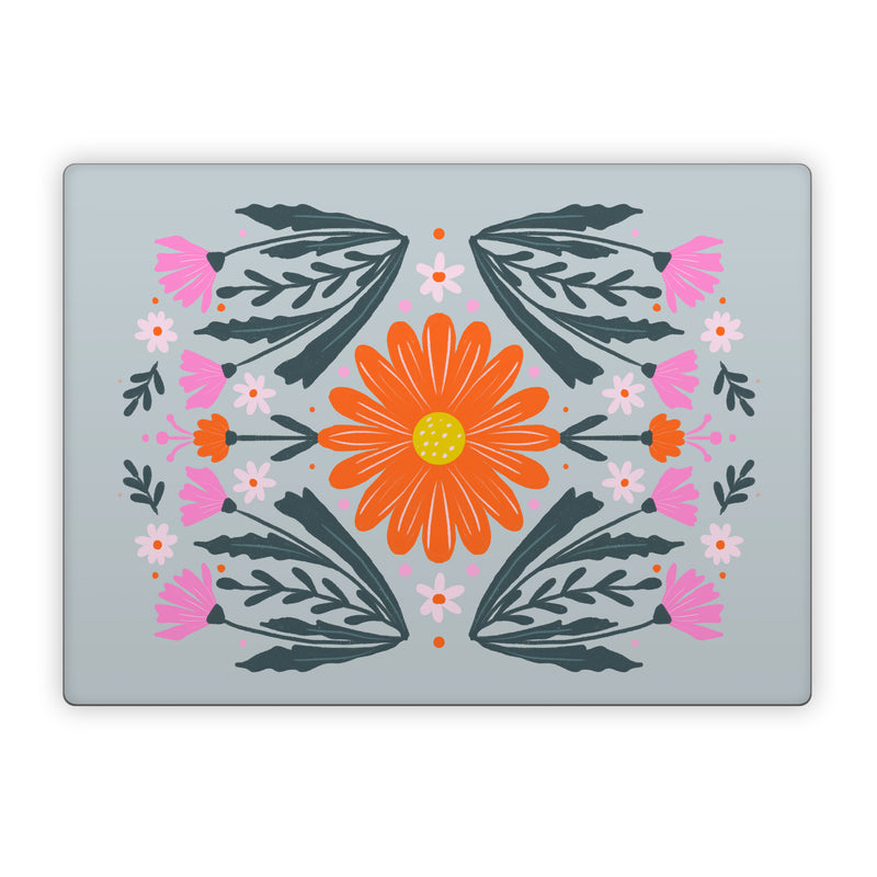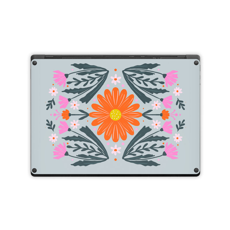iStyles Microsoft Surface Laptop Series Skin design of Petal, Gesture, Font, Flower, Pattern, Art, Creative arts, Floral design, Illustration, Flowering plant, with pink, orange, green, white colors, and tagged with patterns, flowers, nature, flowers, leaves, bonquet.