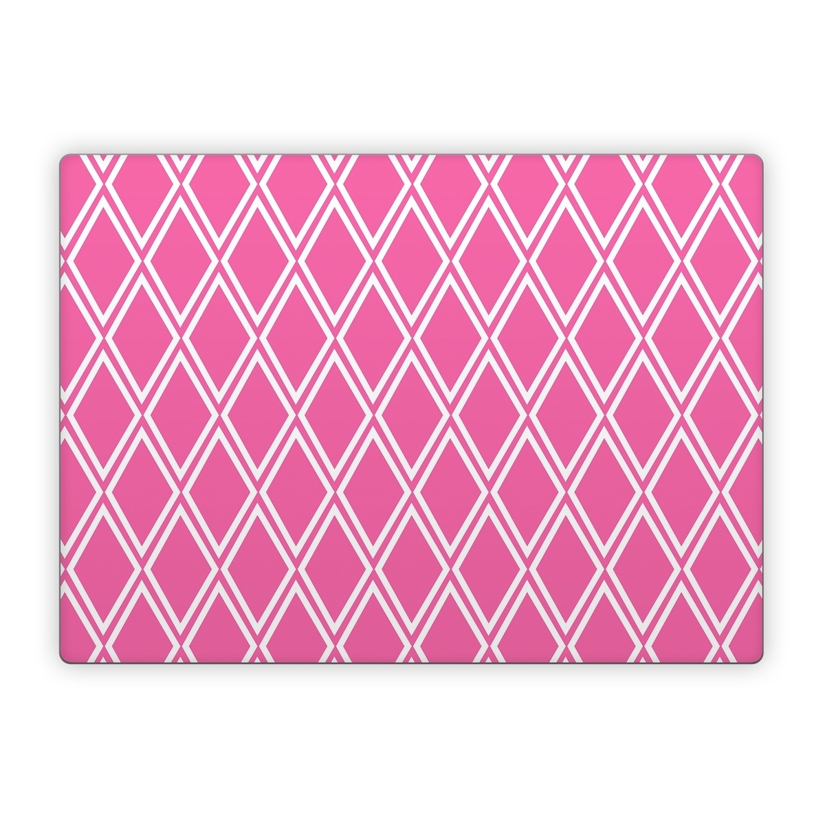 iStyles Microsoft Surface Laptop Series Skin design of Pink, Rectangle, Font, Material property, Magenta, Symmetry, Parallel, Pattern, Peach, Circle, with pink, white colors, and tagged with patterns, checks.
