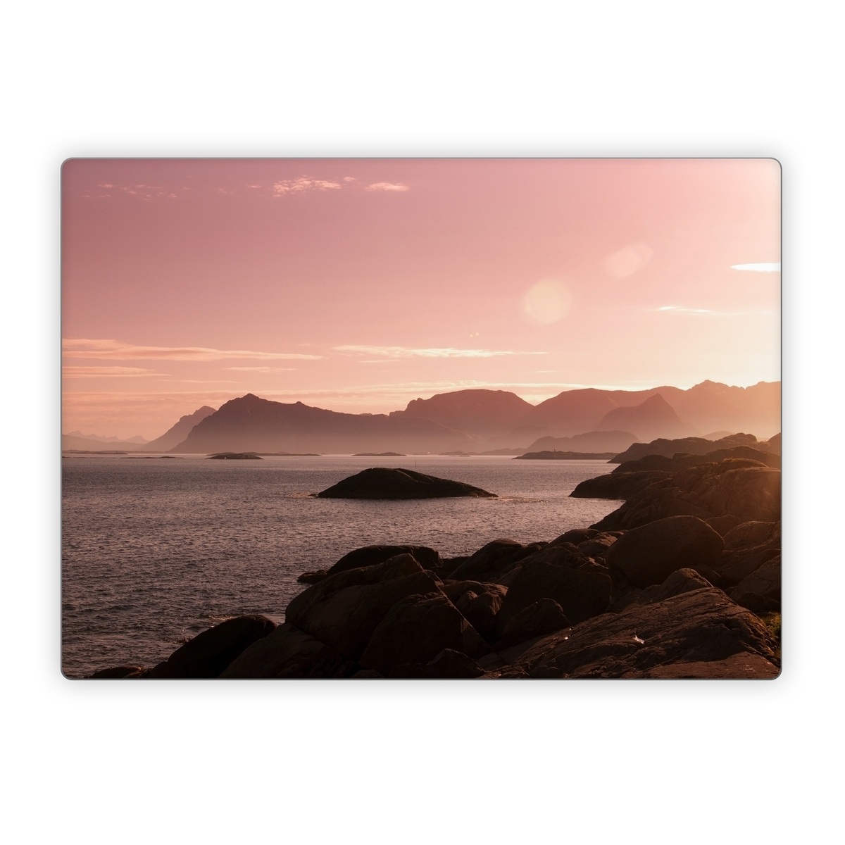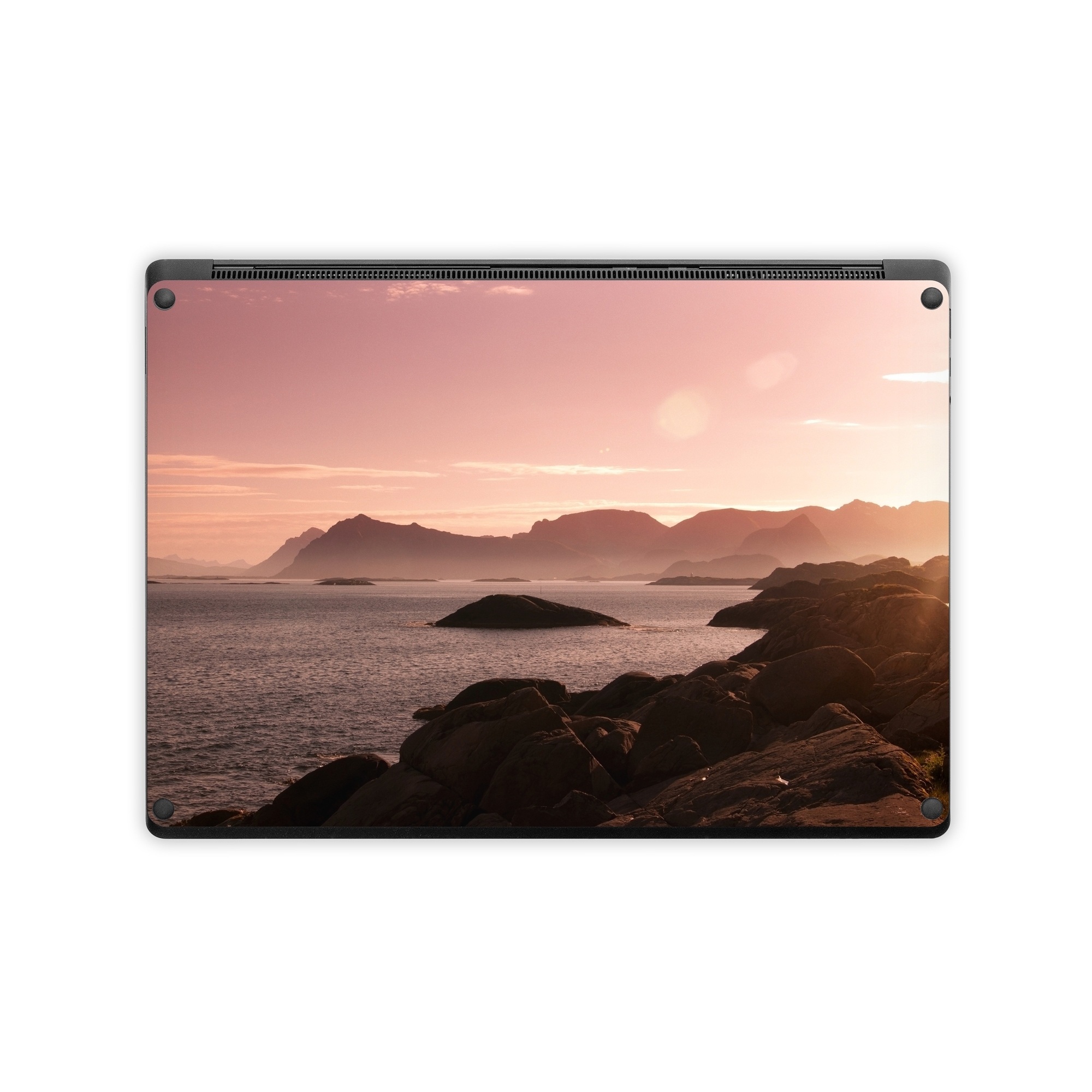 iStyles Microsoft Surface Laptop Series Skin design of Sky, Nature, Sea, Atmospheric phenomenon, Horizon, Natural landscape, Coast, Cloud, Morning, Calm, with gray, black, red, pink, green colors, and tagged with photos, nature.