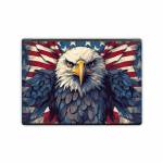 iStyles Microsoft Surface Laptop Series Skin design of Bird, Accipitridae, Beak, Sea eagle, Falconiformes, Feather, Eagle, Painting, Art, Bald eagle, with red, blue, white, brown, yellow, gray, orange colors, and tagged with flags, animals, signs, united, states, eagle, flag, stars, stripes.