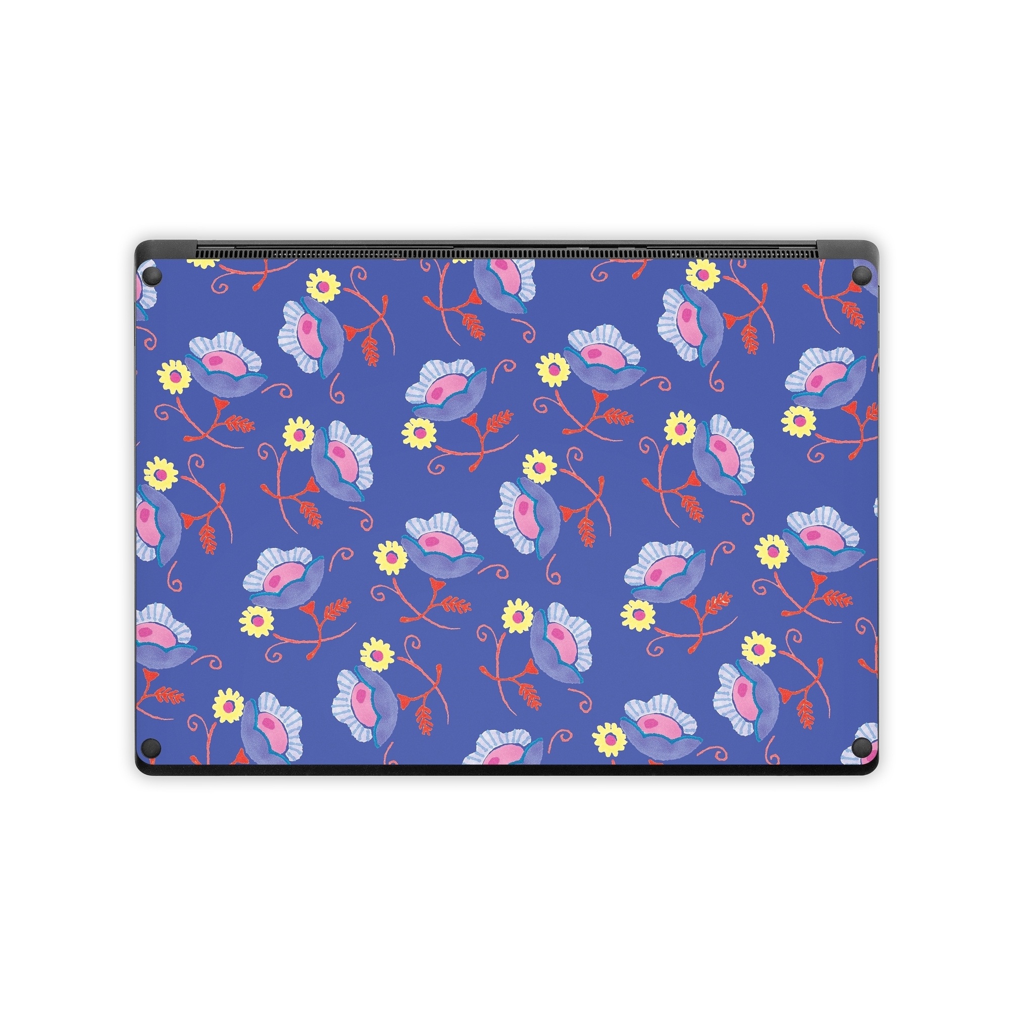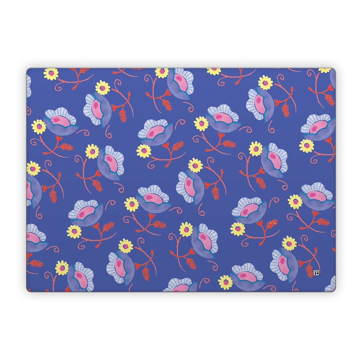 iStyles Microsoft Surface Laptop Series Skin design of Azure, Textile, Rectangle, Art, Aqua, Painting, Pattern, Electric blue, Font, Visual arts, with purple, red, yellow, pink colors, and tagged with patterns, flowers, purple, flower, pattern.