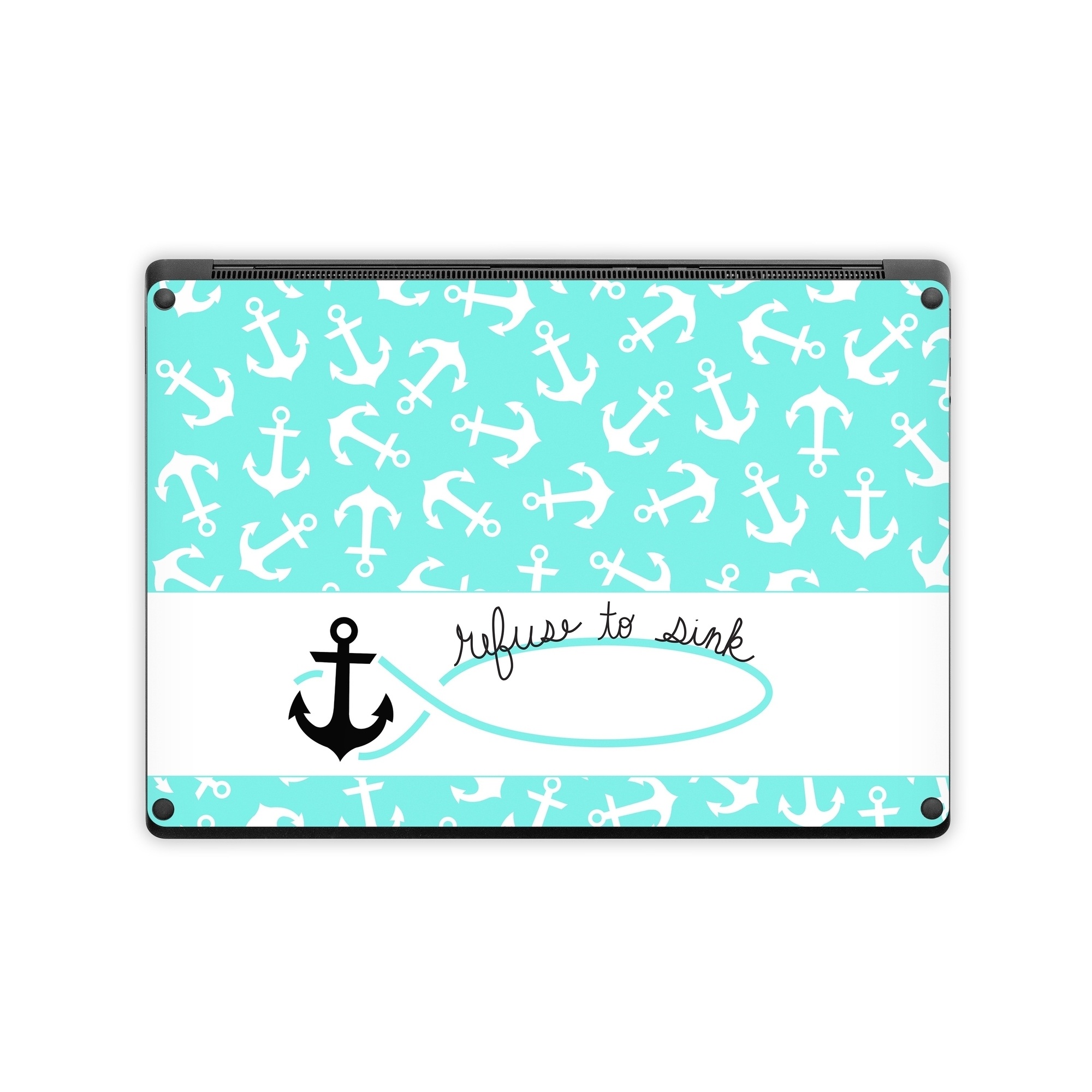 iStyles Microsoft Surface Laptop Series Skin design of Text, Turquoise, Aqua, Font, Teal, Pattern, Line, Design, Illustration, with gray, white, blue, green colors, and tagged with signs, patterns, objects.