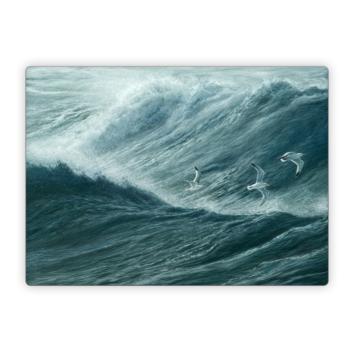 iStyles Microsoft Surface Laptop Series Skin design of Wave, Wind wave, Tide, Sea, Ocean, Water, Sky, Wind, Tsunami, Surfing, with blue, white colors, and tagged with animals, nature, bay, beach, ocean, sea, seagulls, swell, wave.
