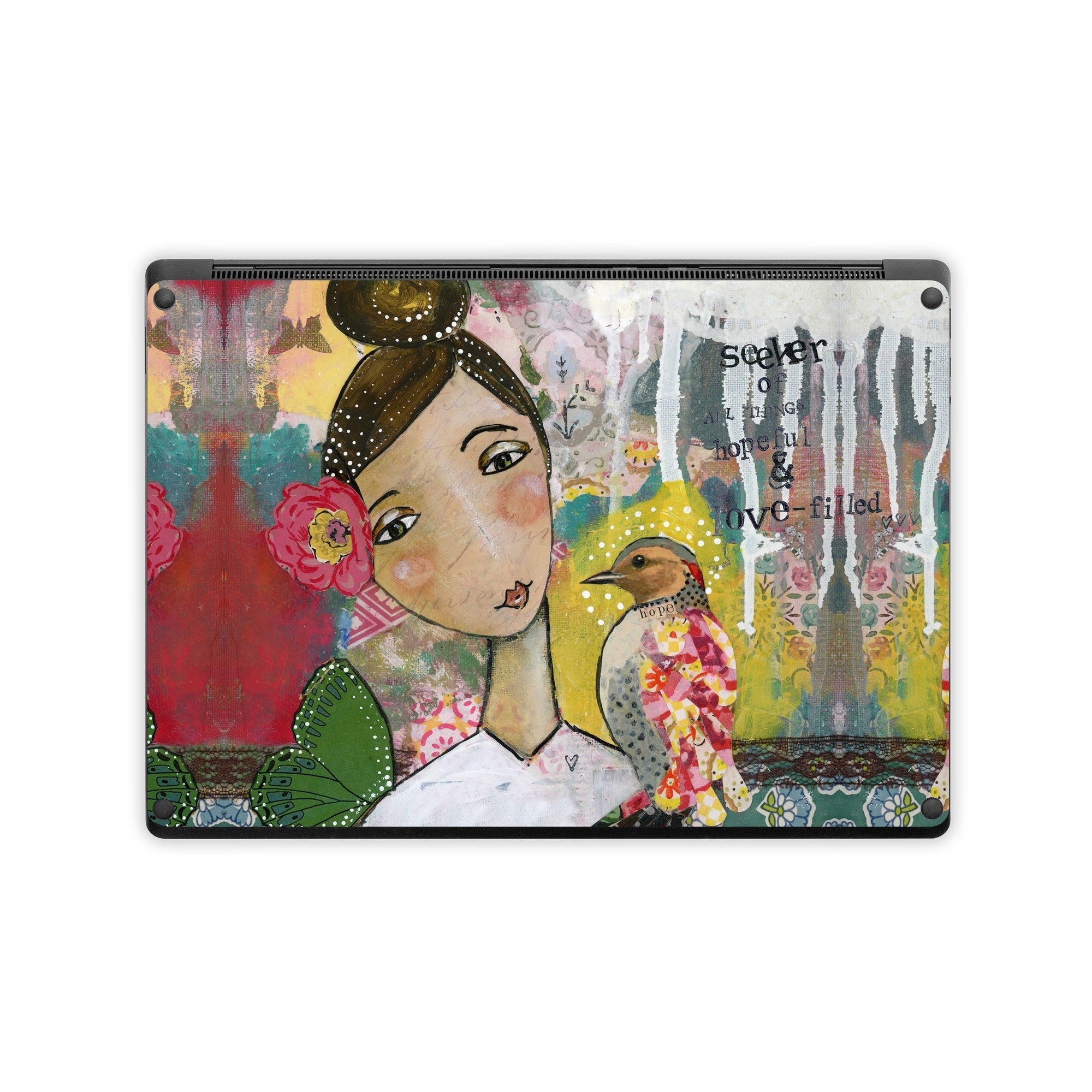 iStyles Microsoft Surface Laptop Series Skin design of Art, Painting, Illustration, Visual arts, Watercolor paint, Acrylic paint, Flower, Plant, Paint, Modern art, with white, green, pink, red, yellow colors, and tagged with signs, people, flowers, animals.