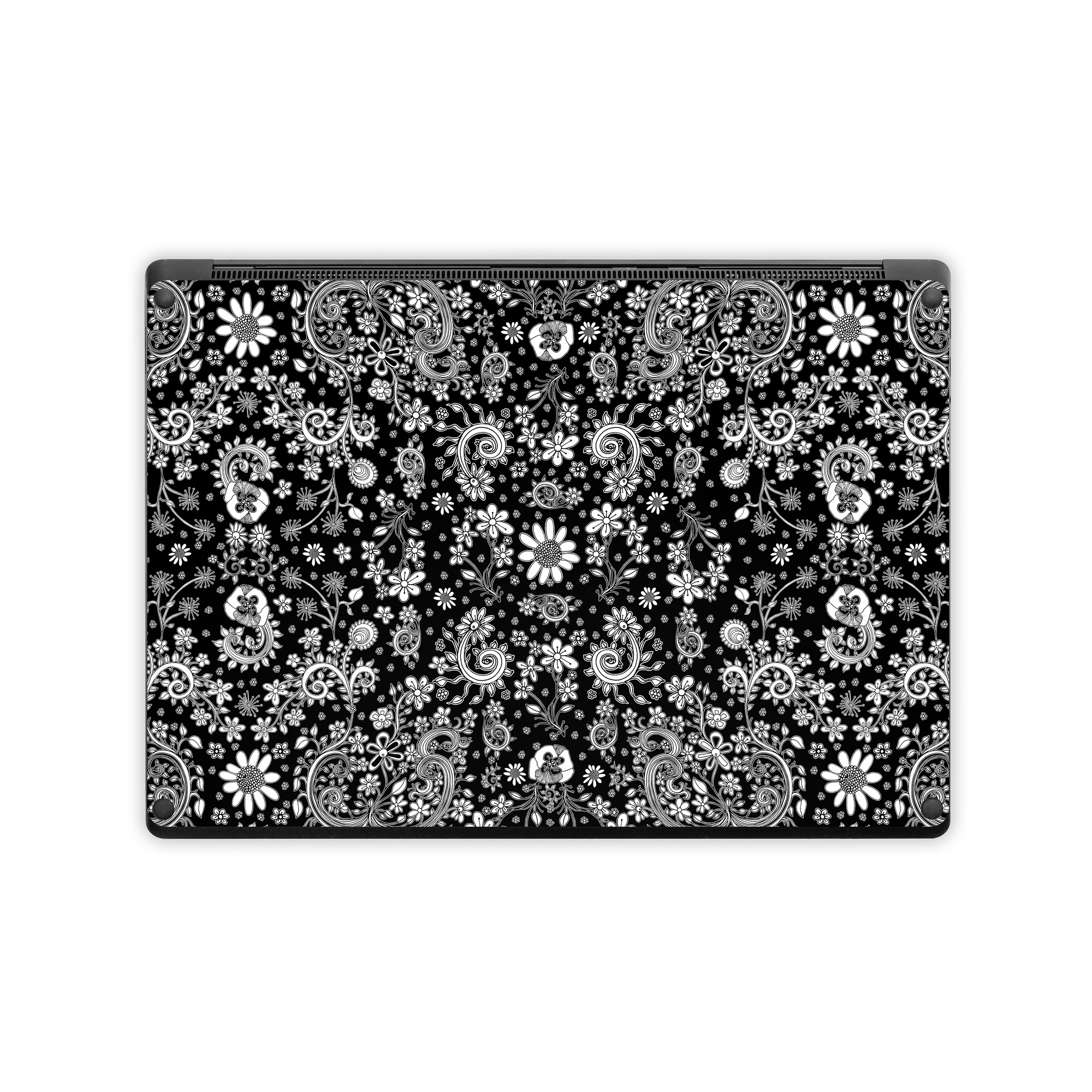 iStyles Microsoft Surface Laptop Series Skin design of Pattern, Monochrome, Design, Black-and-white, Visual arts, Textile, Motif, Monochrome photography, Symmetry, with black, white colors, and tagged with patterns, flowers, blackandwhite, doodles, florals, flowers, sketches.