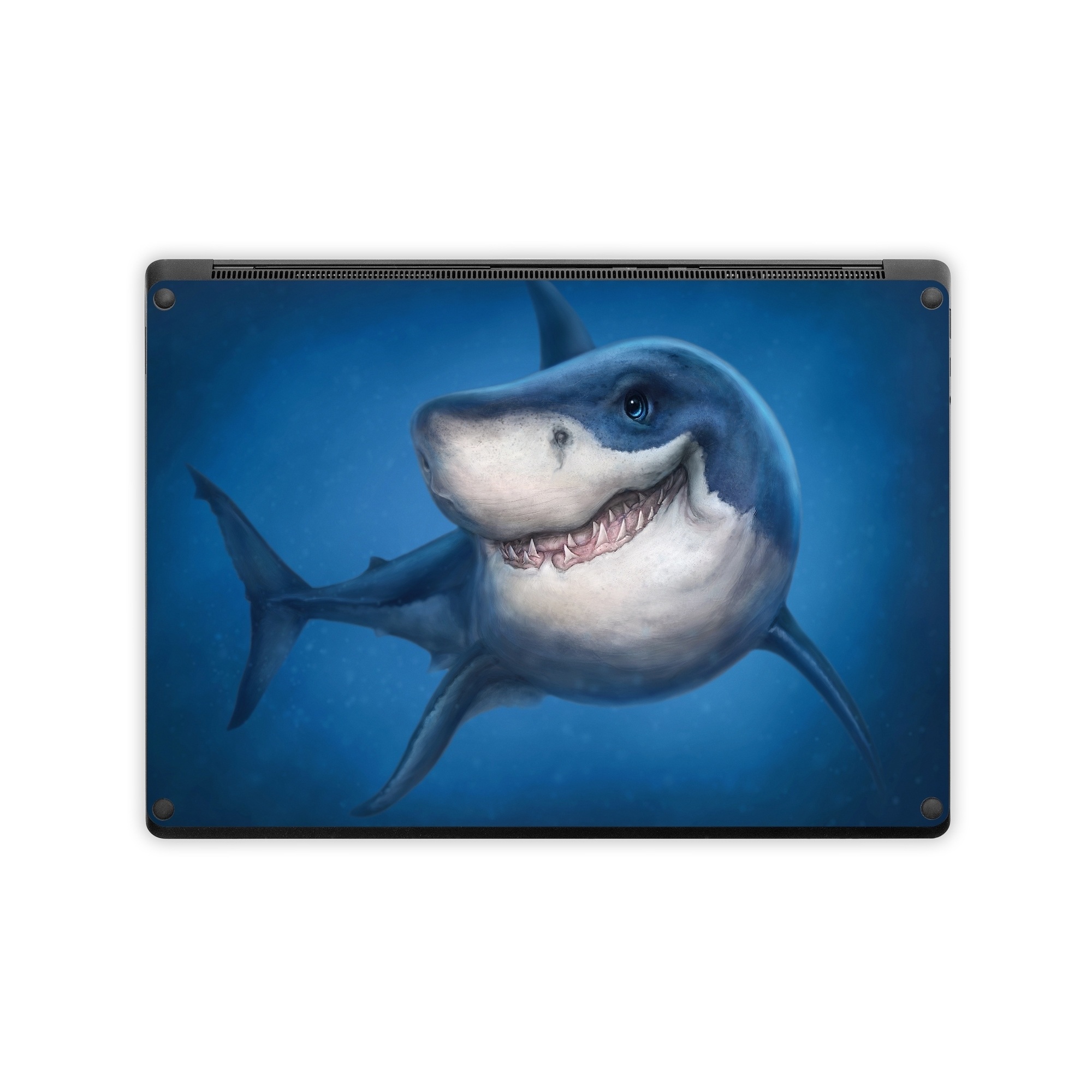 iStyles Microsoft Surface Laptop Series Skin design of Fish, Great white shark, Shark, Tiger shark, Cartilaginous fish, Requiem shark, Lamniformes, Bull shark, Carcharhiniformes, with black, blue, gray colors, and tagged with animals, animals, ocean, sealife, shark, wildlife.