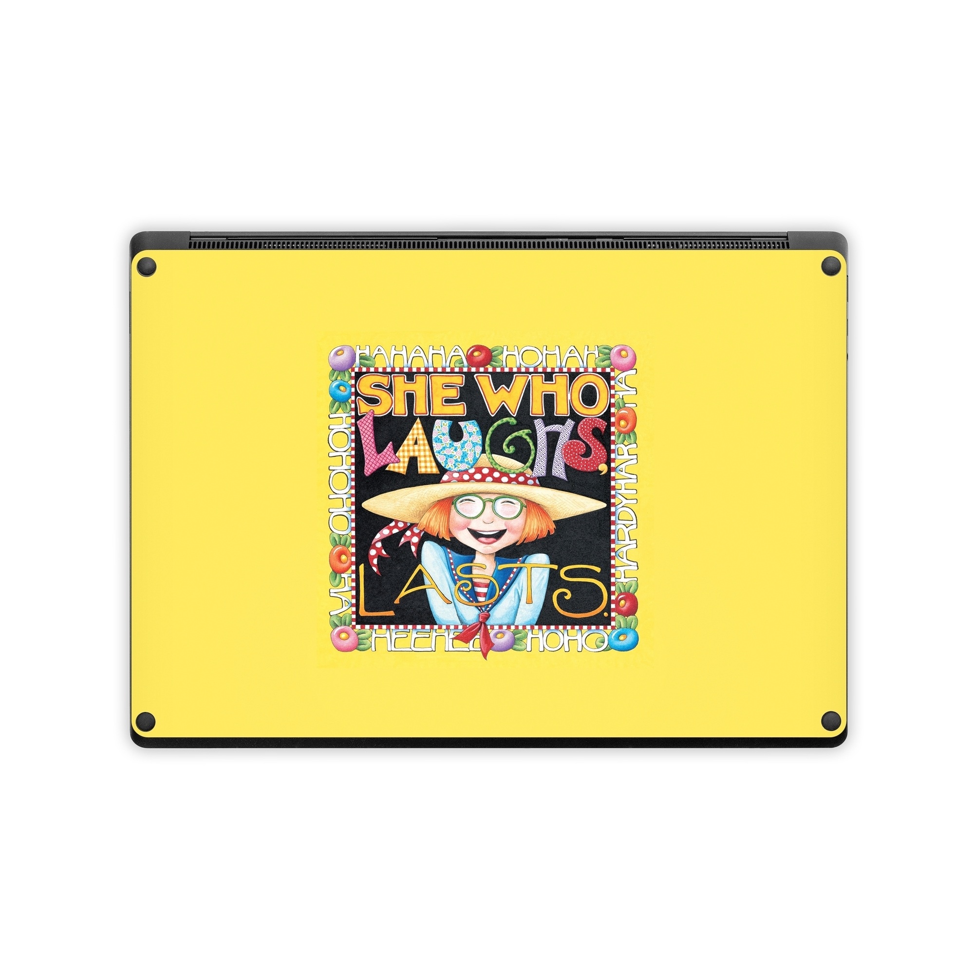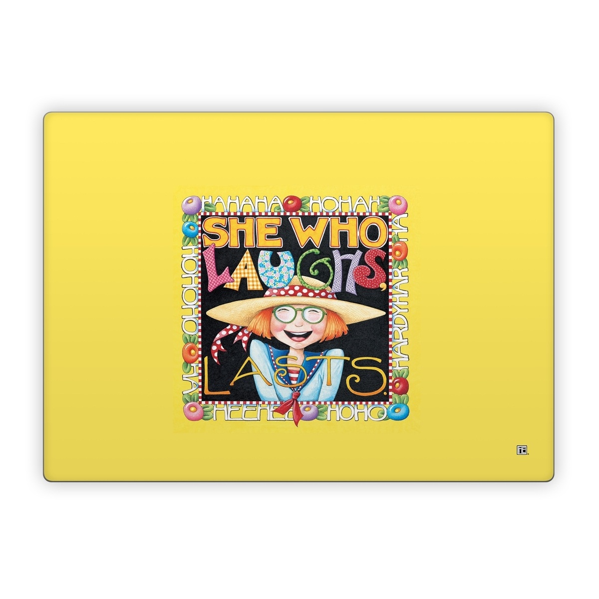 iStyles Microsoft Surface Laptop Series Skin design of Text, with orange, black, gray, green, red, pink colors, and tagged with people, signs.