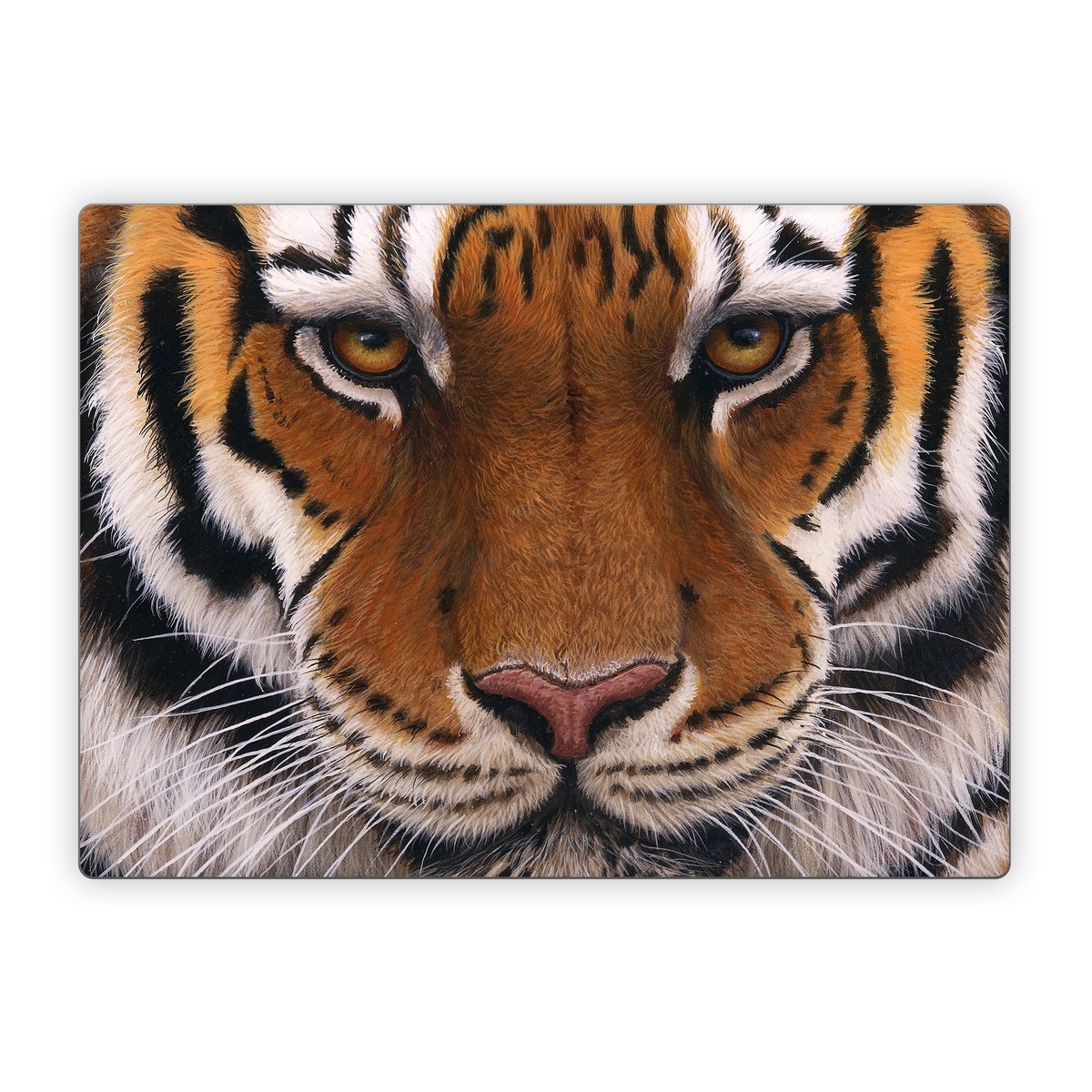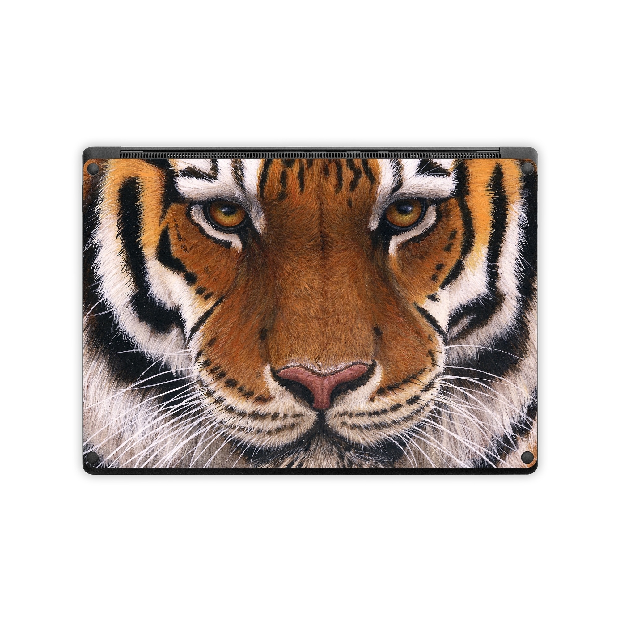 iStyles Microsoft Surface Laptop Series Skin design of Tiger, Mammal, Wildlife, Terrestrial animal, Vertebrate, Bengal tiger, Whiskers, Siberian tiger, Felidae, Snout, with black, gray, red, green, pink colors, and tagged with animals.