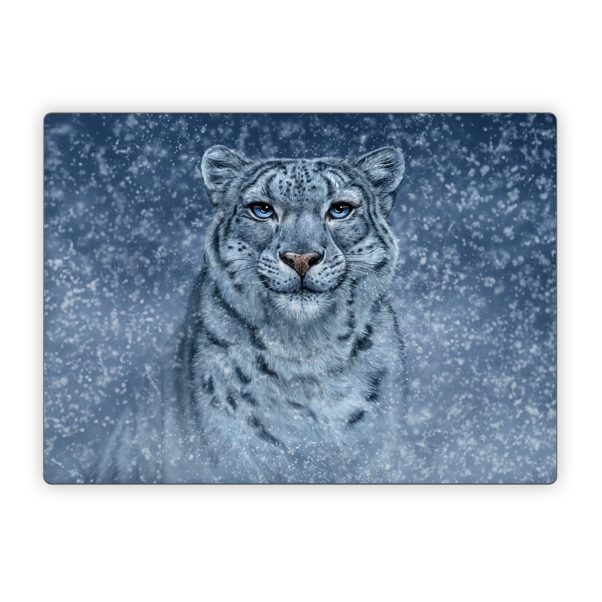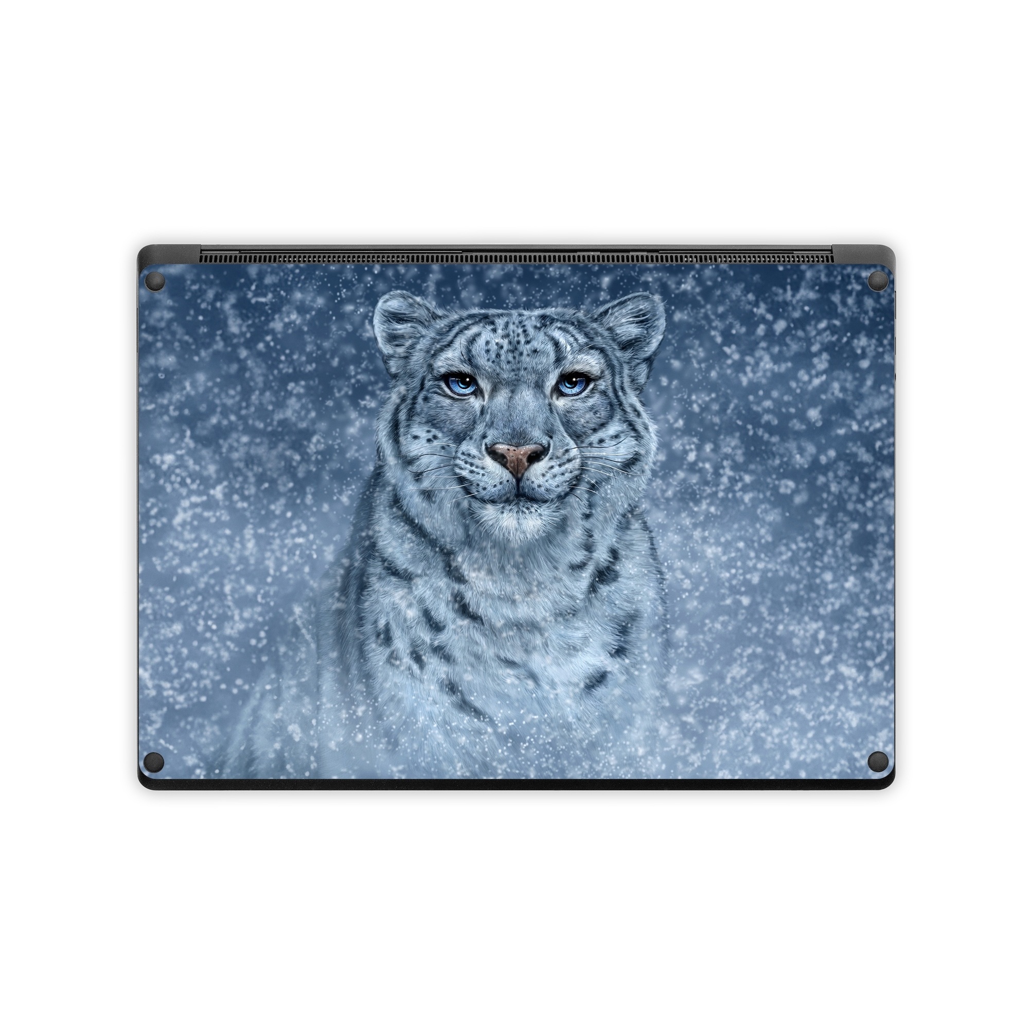 iStyles Microsoft Surface Laptop Series Skin design of Snow, Carnivore, Felidae, Whiskers, Terrestrial animal, Snout, Big cats, Painting, Fur, Illustration, with white, black, blue, gray colors, and tagged with fineart, animals, snow, tiger, blue, eyes.
