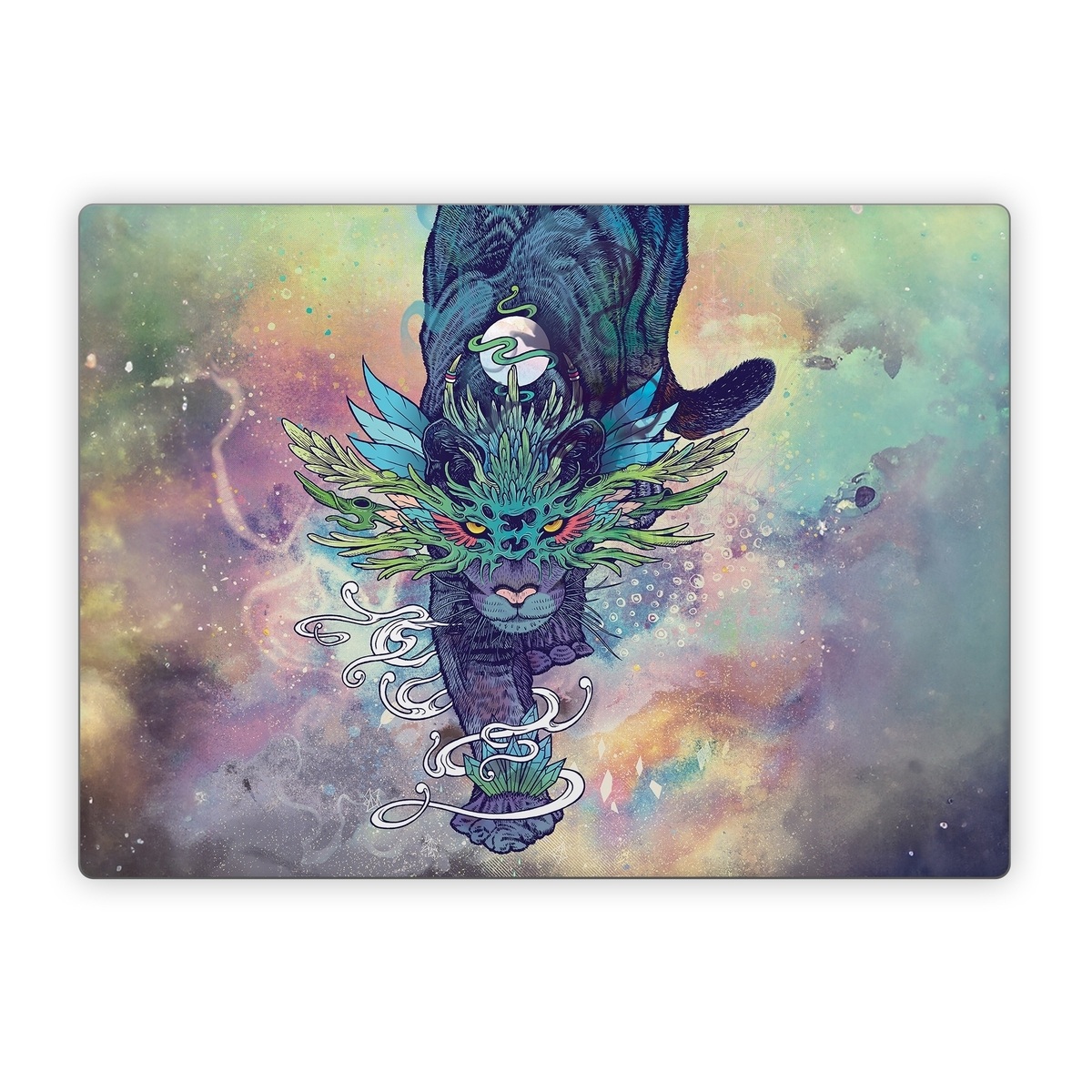 iStyles Microsoft Surface Laptop Series Skin design of Illustration, Fictional character, Graphic design, Demon, Art, Fiction, Cg artwork, Supernatural creature, with blue, green, black, white, yellow, orange, pink, purple colors, and tagged with abstract, animals, animals, cat, illustration, lion, surreal, tiger.