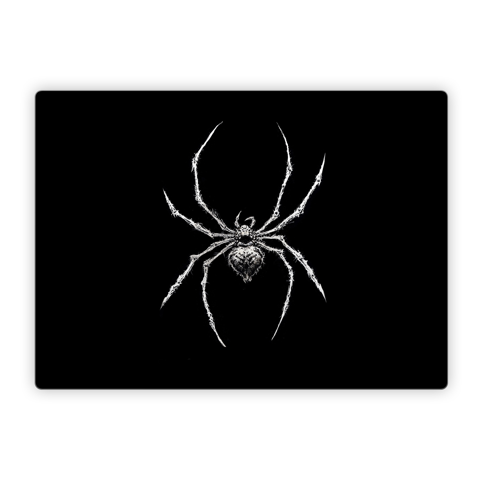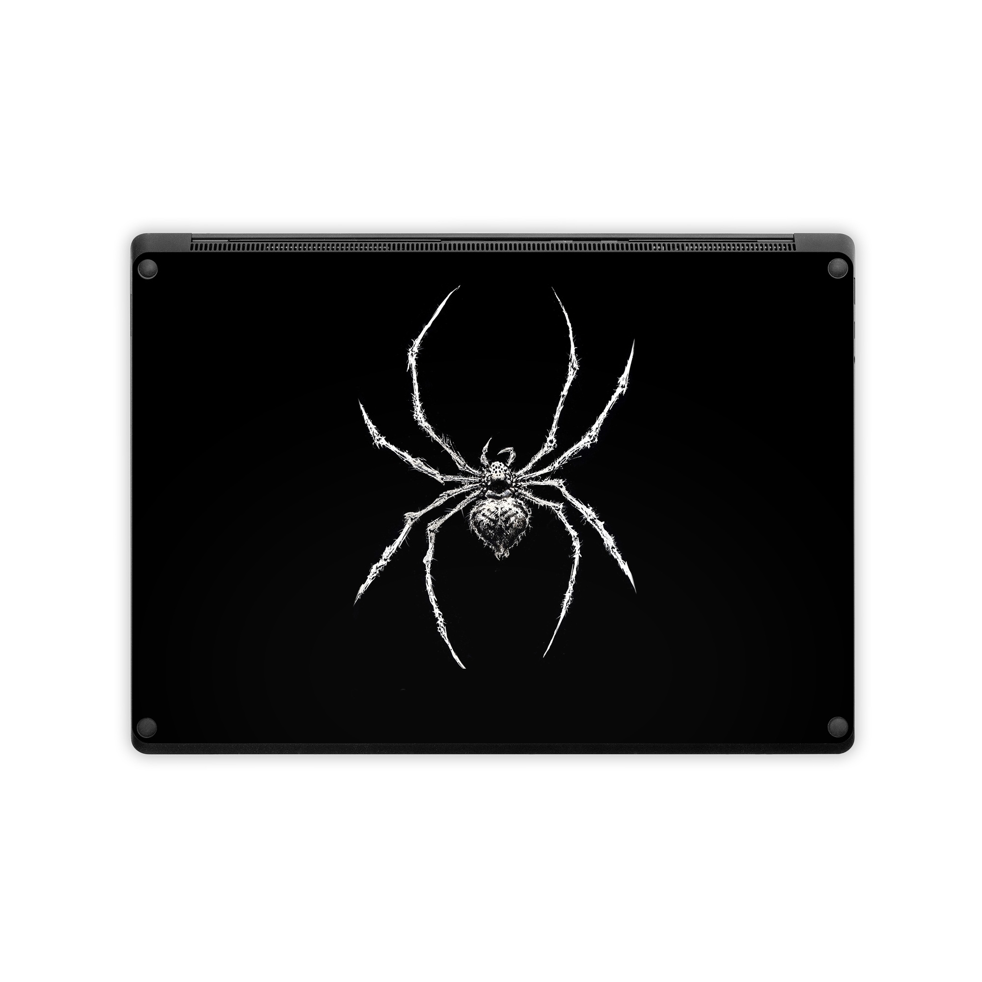 iStyles Microsoft Surface Laptop Series Skin design of Arthropod, Spider, Insect, Spider web, Terrestrial animal, Arachnid, Invertebrate, Tangle-web spider, Symmetry, Terrestrial plant, with black, white, gray colors, and tagged with animals, fantasy, spider, arachnids, arachnophobia.
