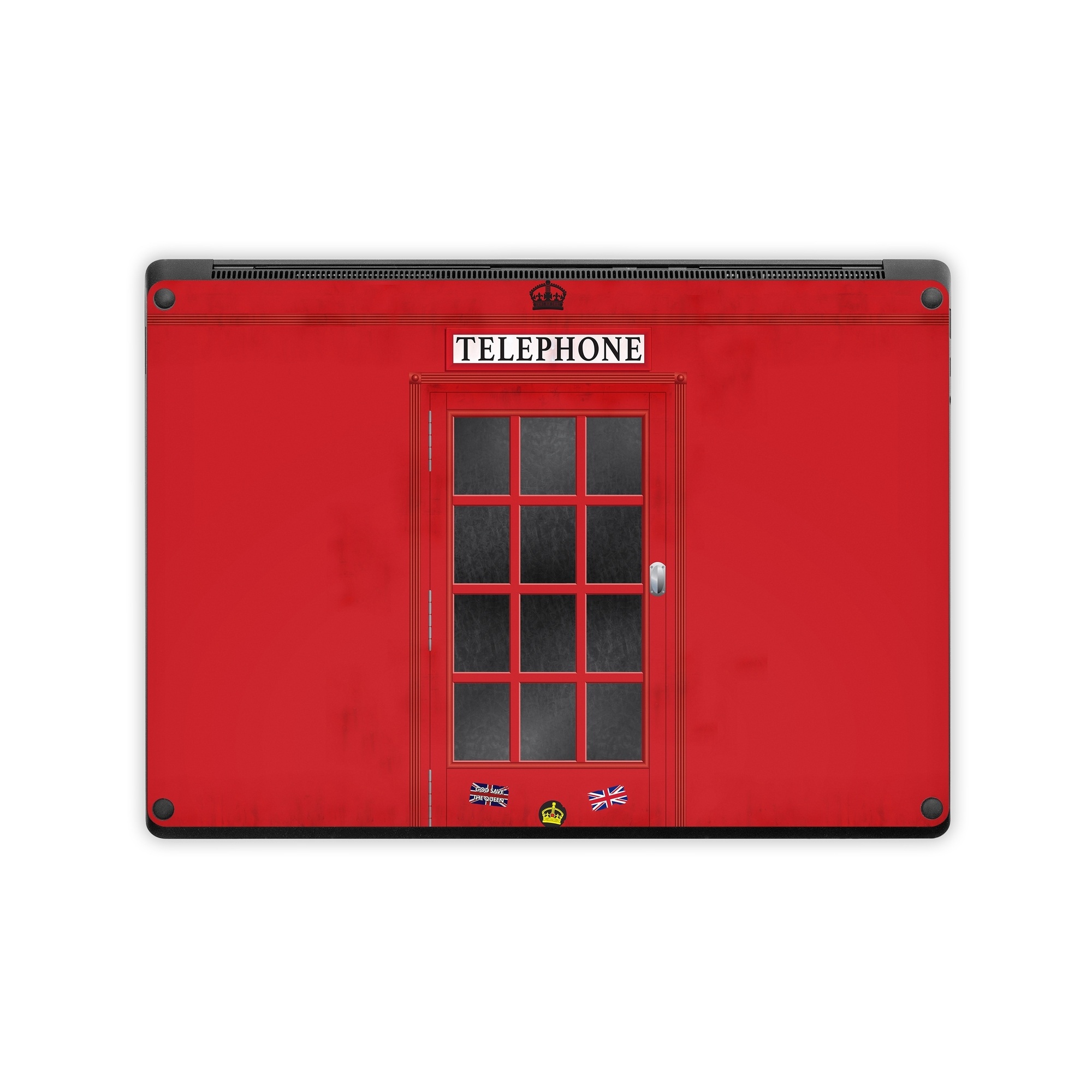 iStyles Microsoft Surface Laptop Series Skin design of Red, Font, Building, Telephone Booth, Facade, with red, black, gray, white, blue, yellow colors, and tagged with lookslike, signs, urban, objects, britishphonebooth, k2, kioskno.2, telephone.