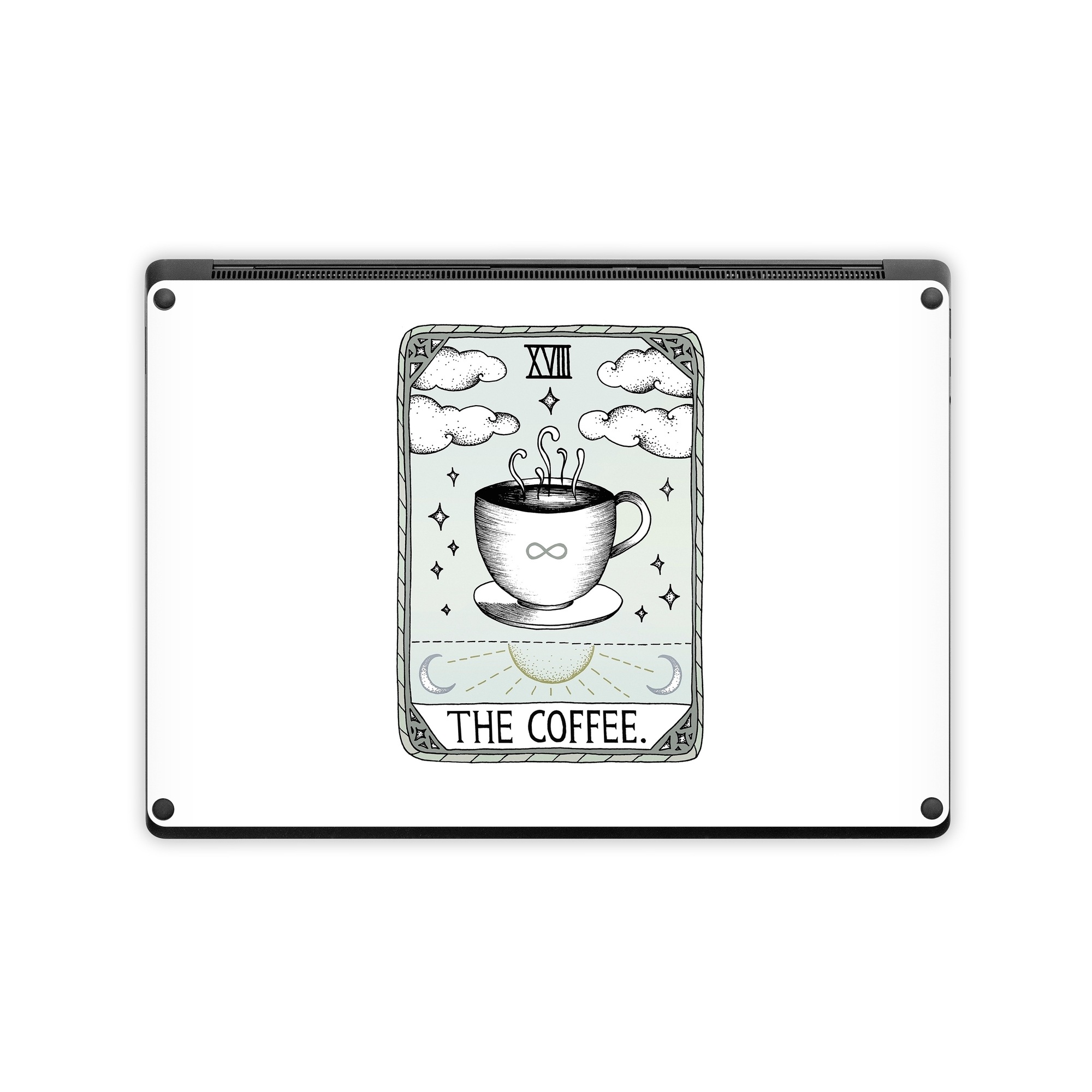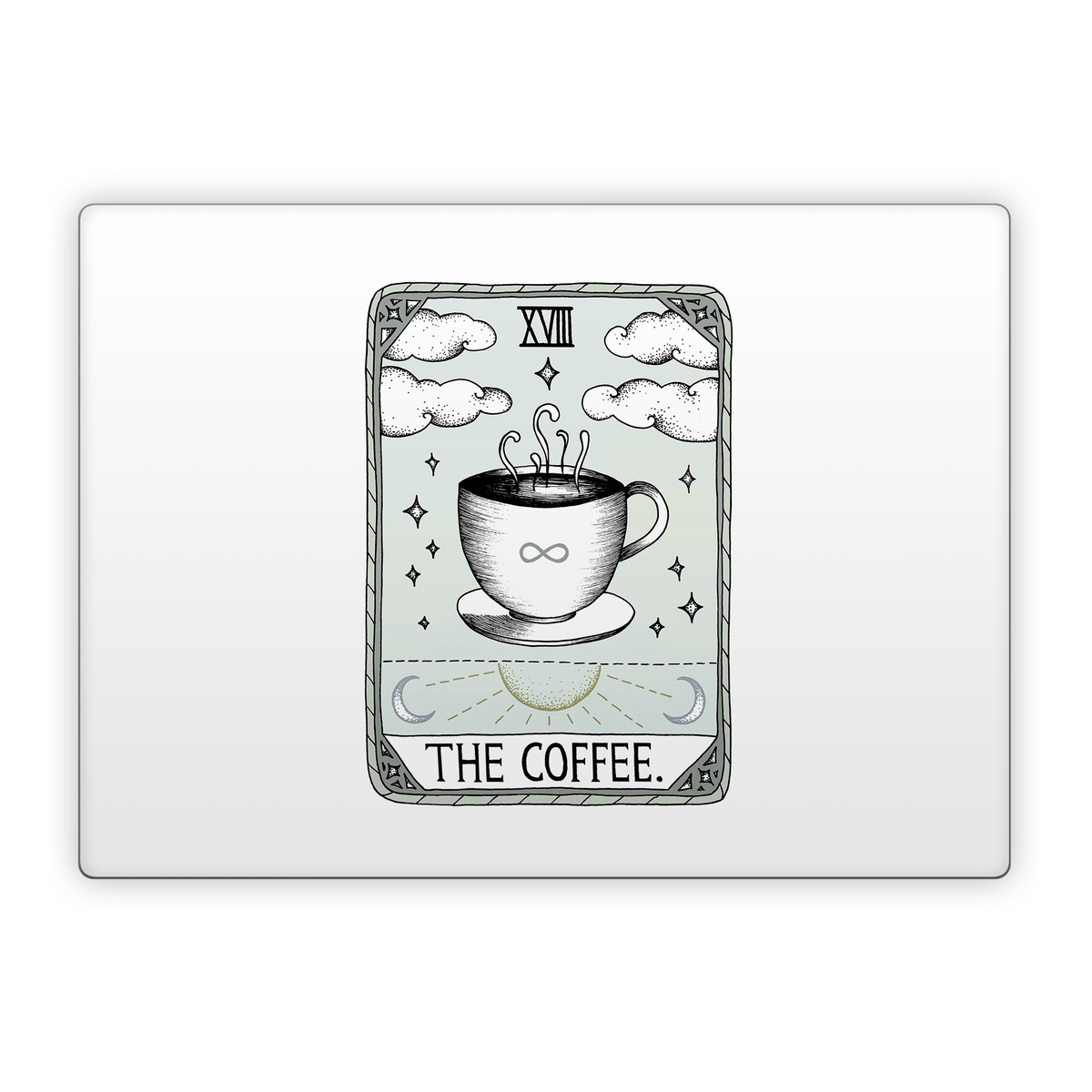 iStyles Microsoft Surface Laptop Series Skin design of Cup, Cartoon, Drinkware, Coffee cup, Tableware, Teacup, Illustration, Drink, Line art, with white, black, green, gray, yellow colors, and tagged with objects, signs, space, coffee, handdrawn, pastel, sketch, tarot.