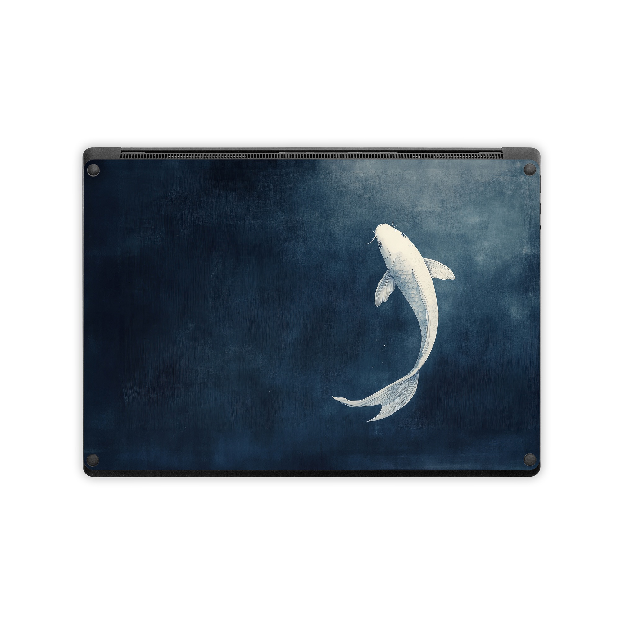 iStyles Microsoft Surface Laptop Series Skin design of Water, Liquid, Art, Wing, Beak, Feather, Seabird, Electric blue, Fish, Tail, with black, blue, white, gray colors, and tagged with animals, fineart, koi, fish, pond, good, luck.