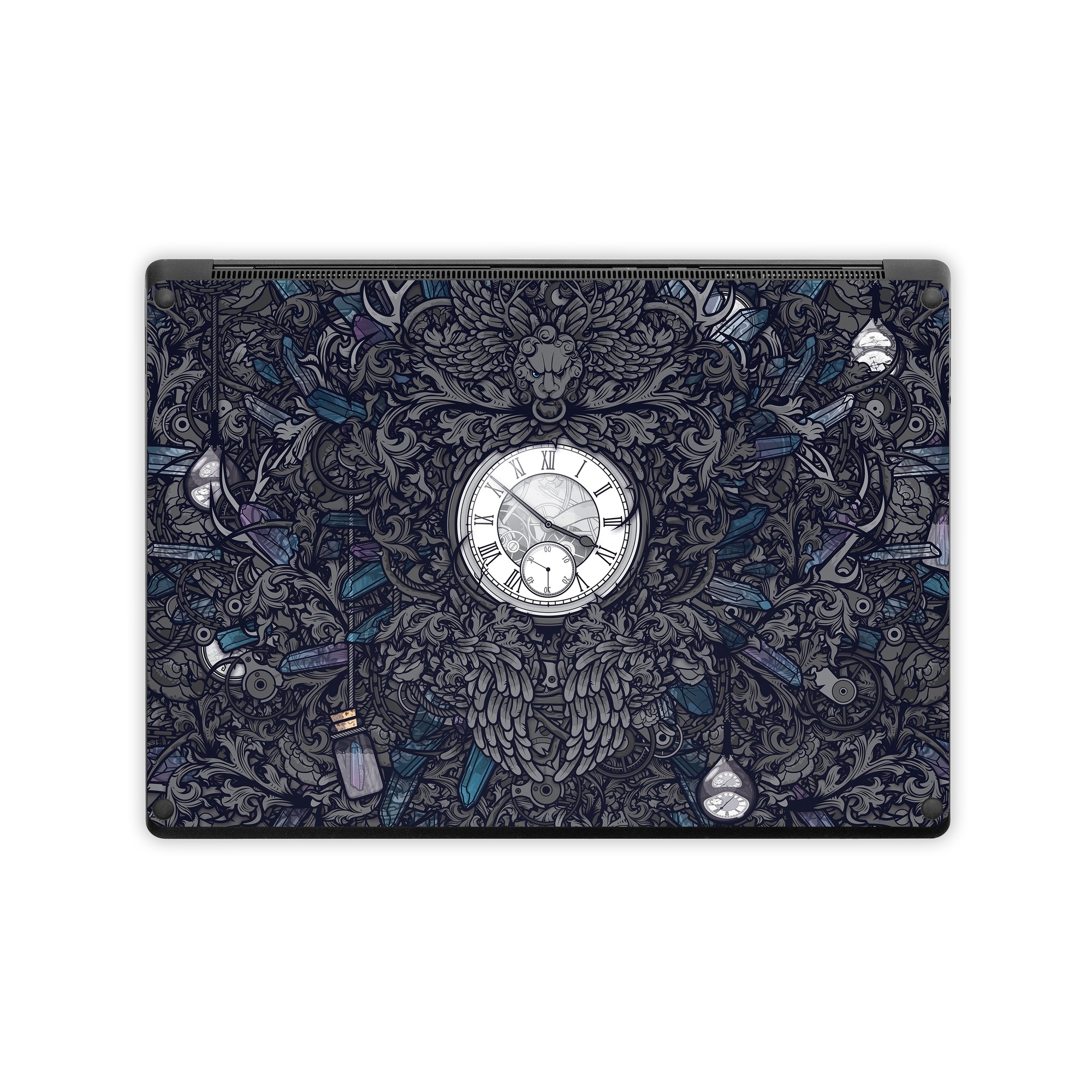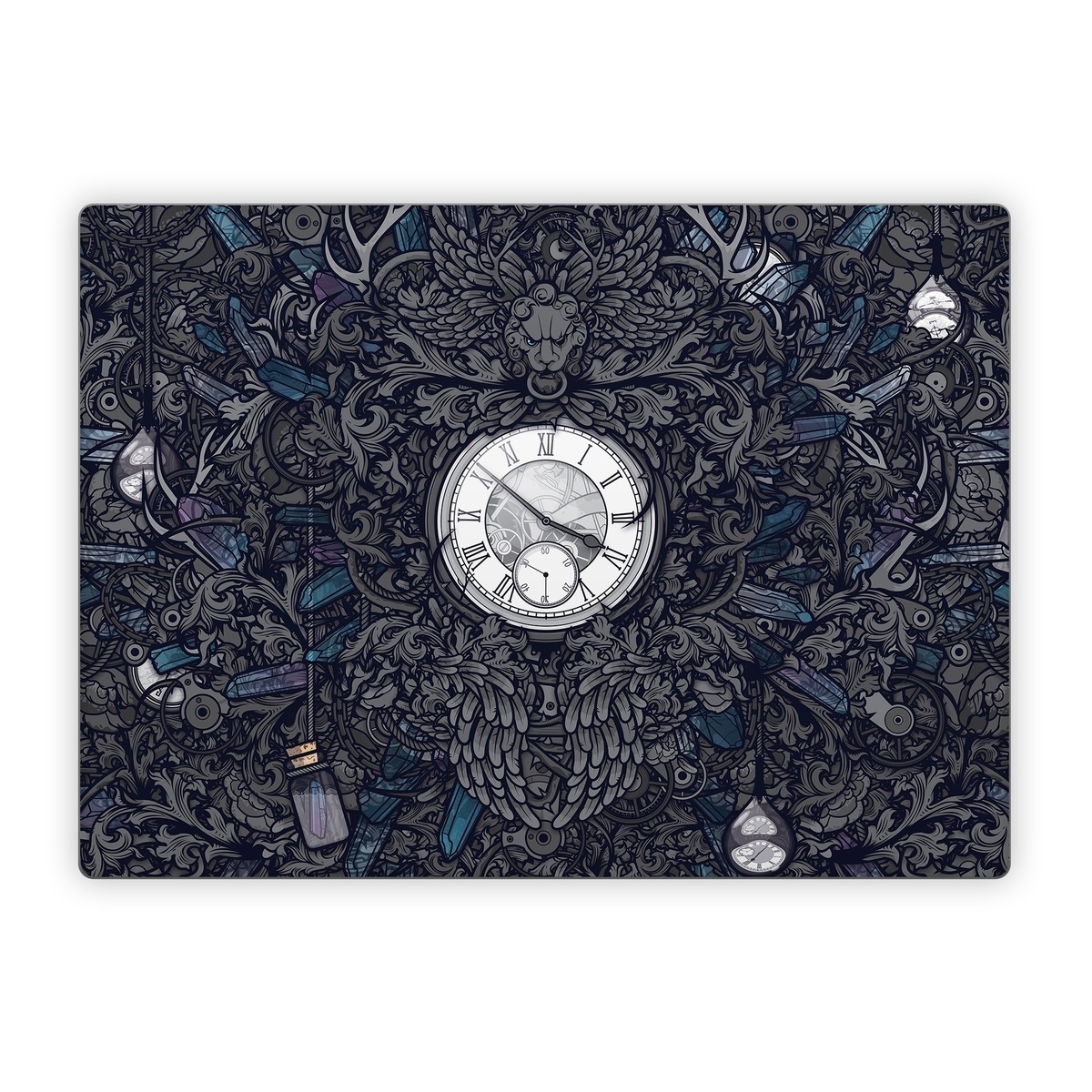 iStyles Microsoft Surface Laptop Series Skin design of Blue, Pattern, Psychedelic art, Design, Circle, Art, Font, Graphic design, Visual arts, Illustration, with black, gray colors, and tagged with objects, patterns, animals, grandfather, clock, clocks, alarm, time, antique, table.